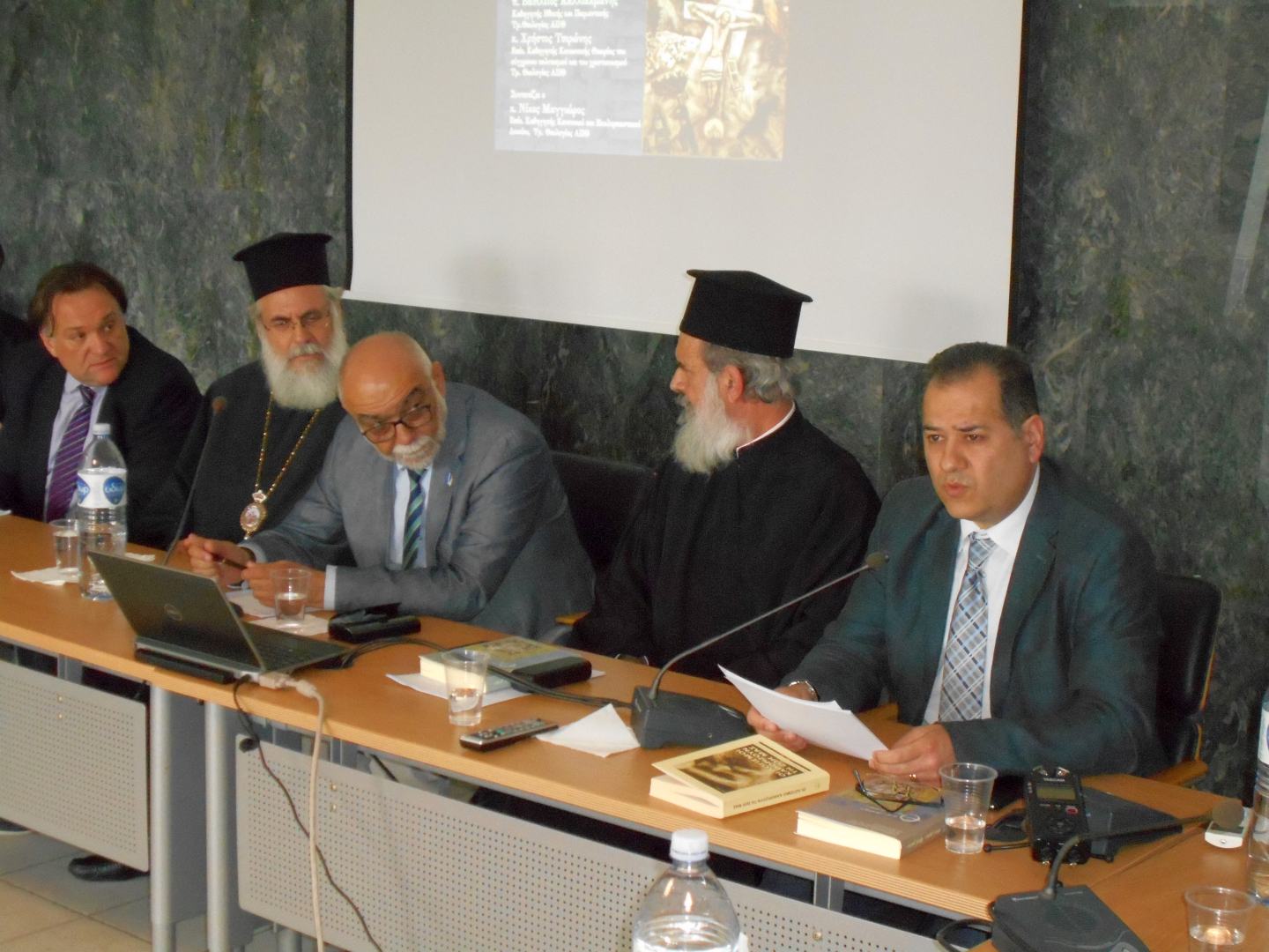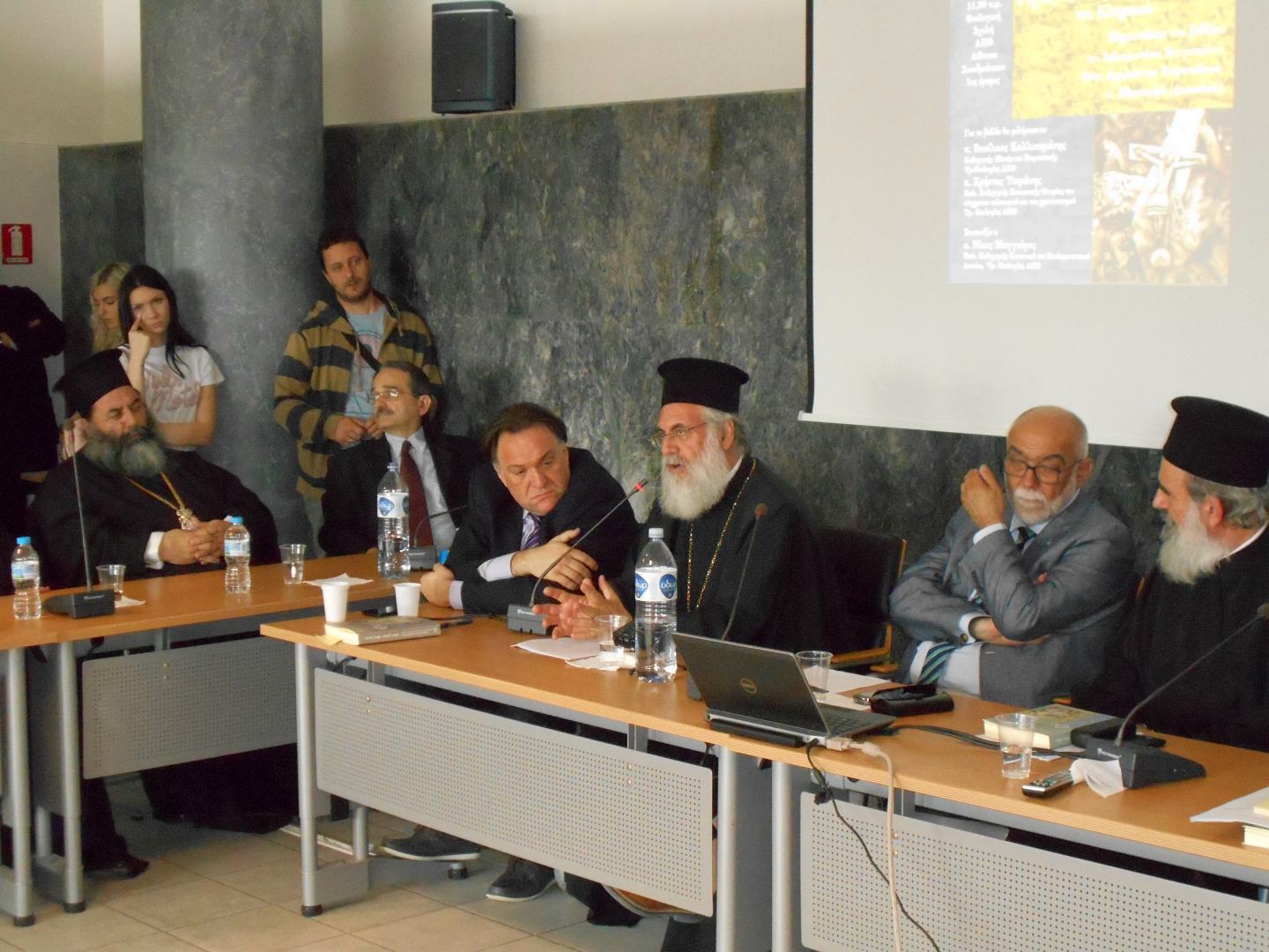 Την εκδήλωση τίμησαν με την παρουσία τους μεταξύ άλλων: ο εκπρόσωπος του Παναγιωτάτου Μητροπολίτου Θεσσαλονίκης κ. Ανθίμου, Αρχιμανδρίτης Ιάκωβος Αθανασίου Γενικός Αρχιερατικός Επίτροπος της Μητροπόλεως Θεσσαλονίκης, οι Σεβαμιώτατοι Μητροπολίτες Κασσανδρείας κ. Νικόδημος, Κηφισίας, Αμαρουσίου και Ωρωπού κ. Κύριλλος, Λαγκαδά, Λητής και Ρεντίνης κ. Ιωάννης, Κίτρους και Κατερίνης κ. Γεώργιος, οι Θεοφιλέστατοι Επίσκοποι Θεουπόλεως κ. Παντελήμων και Θερμών κ. Δημήτριος, πλήθος Καθηγητών των τμημάτων Κοινωνικής και Ποιμαντικής Θεολογίας της Θεολογικής Σχολής του ΑΠΘ, Καθηγητές της Ανωτάτης Εκκλησιαστικής Ακαδημίας Θεσσαλονίκης, επισκέπτες Καθηγητές από το εξωτερικό, κληρικοί και πολλοί φοιτητές.