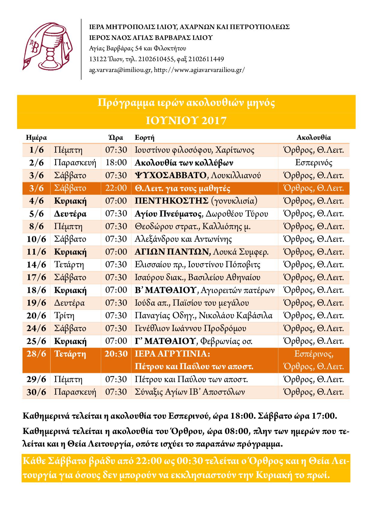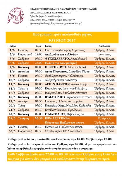 Πρόγραμμα ακολουθιών Ιουνίου 2017