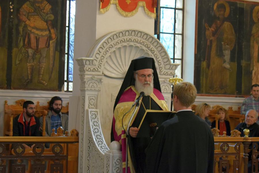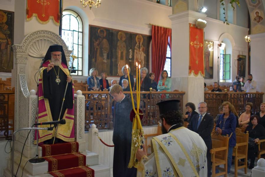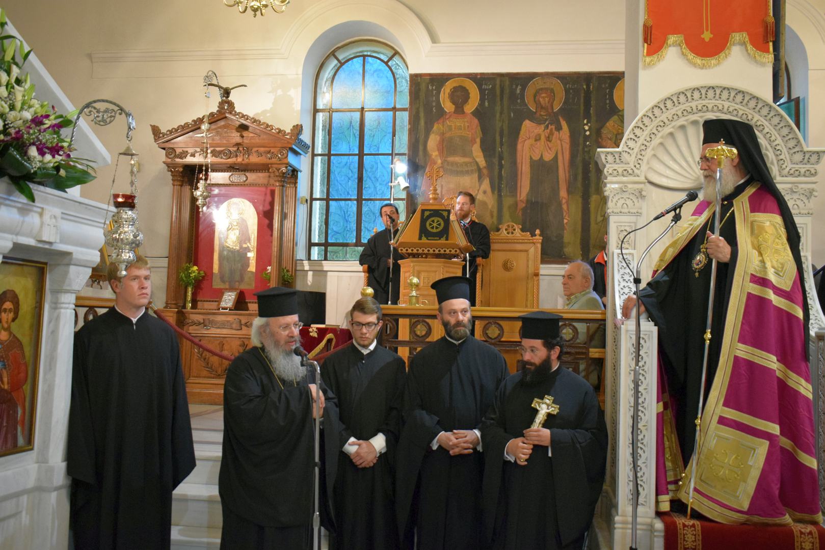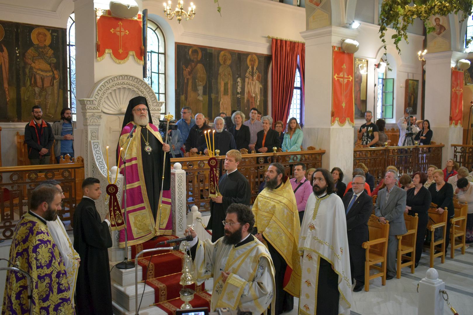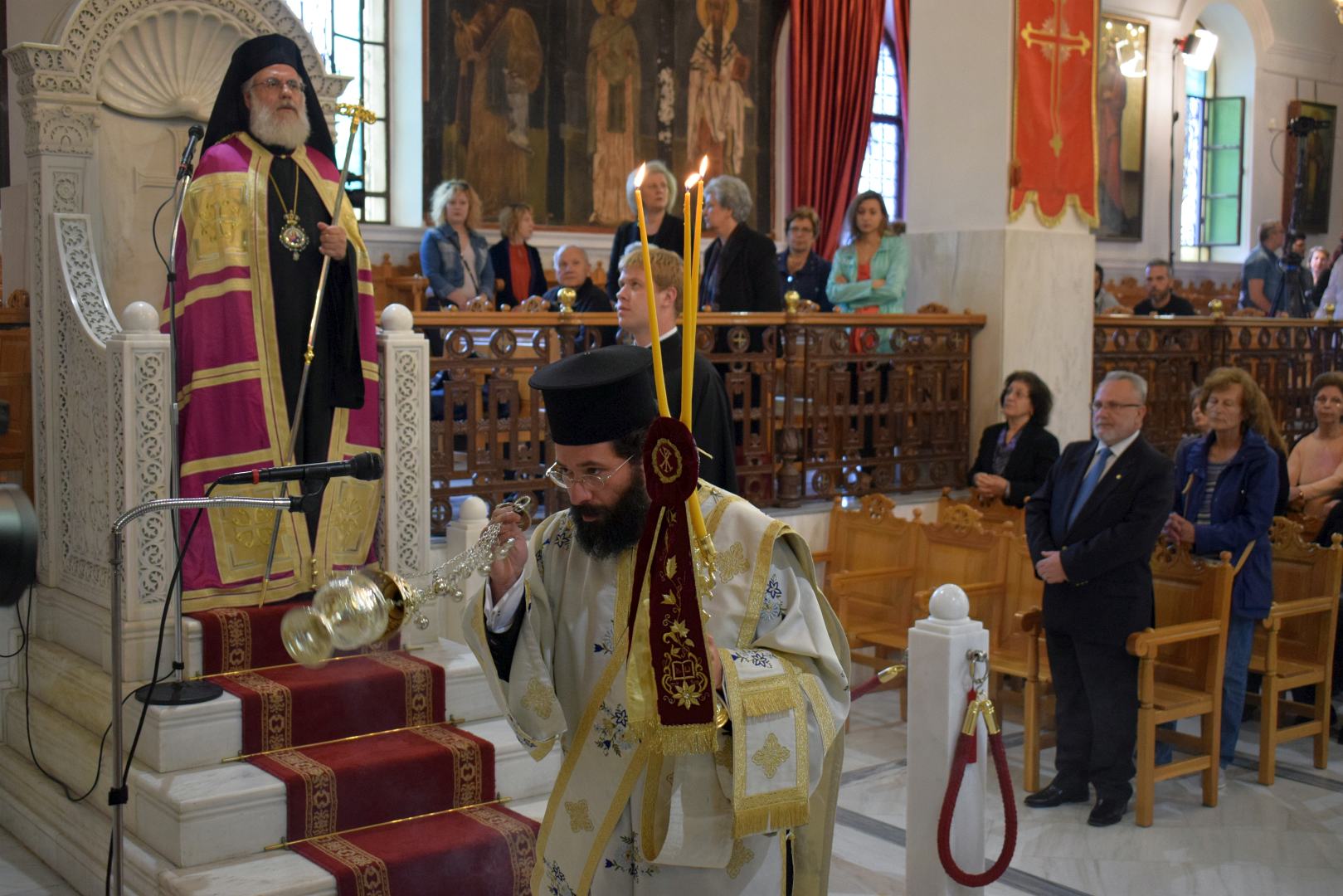 Την πρόσκληση απέστειλε ο Θεοφιλέστατος Επίσκοπος Φαναρίου κ. Αγαθάγγελος, γενικός διευθυντής της Αποστολικής Διακονίας της Εκκλησίας της Ελλάδος, ο οποίος ήταν συμπροσευχόμενος κατά τη διάρκεια του Εσπερινού. Ο Σεβασμιώτατος Μητροπολίτης Ιλίου κ. Αθηναγόρας κήρυξε το Θείο Λόγο στους παρευρισκόμενους πιστούς και αναφέρθηκε στον αναληφθέντα Χριστό αλλά και στον Μέγα και Άγιο Κωνσταντίνο, ο οποίος υπήρξε η αιτία μιας χιλιόχρονης χριστιανικής αυτοκρατορίας, η οποία ανέδειξε εκατοντάδες πατέρες και χιλιάδες αγίους. Ο Άγιος Κωνσταντίνος δημιούργησε τις προϋποθέσεις για τη δογματική διατύπωση της Αλήθειας της Εκκλησίας και στο τέλος της ζωής του έκανε πράξη την μετάνοια, ώστε να αποδείξει πως «ευτυχώς» τα κριτήρια της αγιότητας για την Εκκλησία είναι διαφορετικά από εκείνα των ανθρώπων.