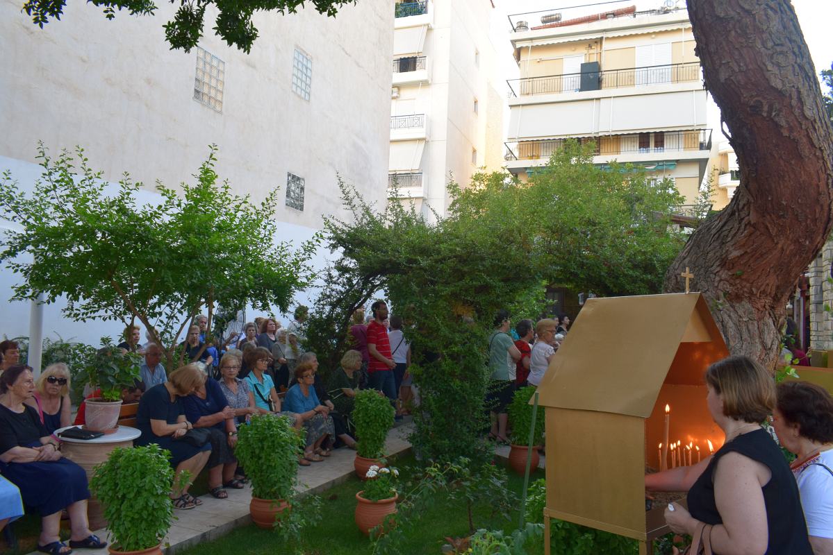 Στο όμορφο περιβάλλον της Ι.Μ. Αγίου Παντελεήμονος Πετρουπόλεως τελέστηκε ο Μέγας Εσπερινός της εορτής του Αγίου, στις 26 Ιουλίου 2017, από τον Σεβ. Μητρ. Ιλίου, Αχαρνών και Πετρουπόλεως κ. Αθηναγόρου.