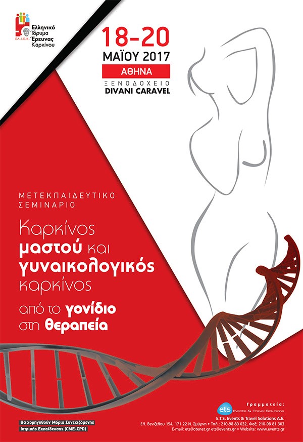 Το Ελληνικό Ίδρυμα Έρευνας του Καρκίνου πραγματοποίησε το Μετεκπαιδευτικό Σεμινάριο, με θέμα «Καρκίνος μαστού και γυναικολογικός καρκίνος, από το γονίδιο στη θεραπεία». Στο Σεμινάριο συζητήθηκαν θέματα που αφορούσαν τον Καρκίνο του Τραχήλου της Μήτρας, τον Καρκίνο των ωοθηκών, την σημασία της Ποιότητας ζωής – σε μακροχρόνιους επιζώντες από καρκίνο, καθώς επίσης και τον ρόλο της Ανοσοθεραπείας στον γυναικολογικό καρκίνο και στον καρκίνο του μαστού.