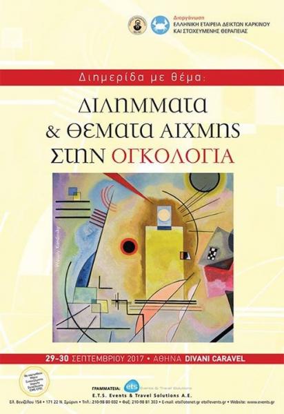 Πραγματοποιήθηκε στις 29-30 ΣΕΠΤΕΜΒΡΙΟΥ 2017 στο ξενοδοχείο  ΑΘΗΝΑ DIVANI CARAVEL η Διημερίδα με τίτλο «Διλήμματα και θέματα αιχμής στην Ογκολογία» που διοργάνωσε η Ελληνική Εταιρεία Δεικτών Καρκίνου και Στοχευμένης Θεραπείας.