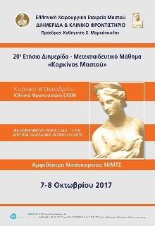 Πραγματοποιήθηκε στις  7 Οκτωβρίου 2017  στο Αμφιθέατρο του Νοσοκομείου ΝΙΜΤΣ στην Αθήνα η  20η Ετήσια Διημερίδα – Μετεκπαιδευτικό Μάθημα με θέμα «Καρκίνος Μαστού».