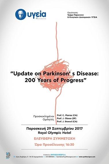 Πραγματοποιήθηκε την Παρασκευή 29 Σεπτεμβρίου 2017 στο ξενοδοχείο Royal Olympic Hotel, η Επιστημονική Ημερίδα με θέμα «“Update on Parkinson’ s Disease: 200 Years of Progress».