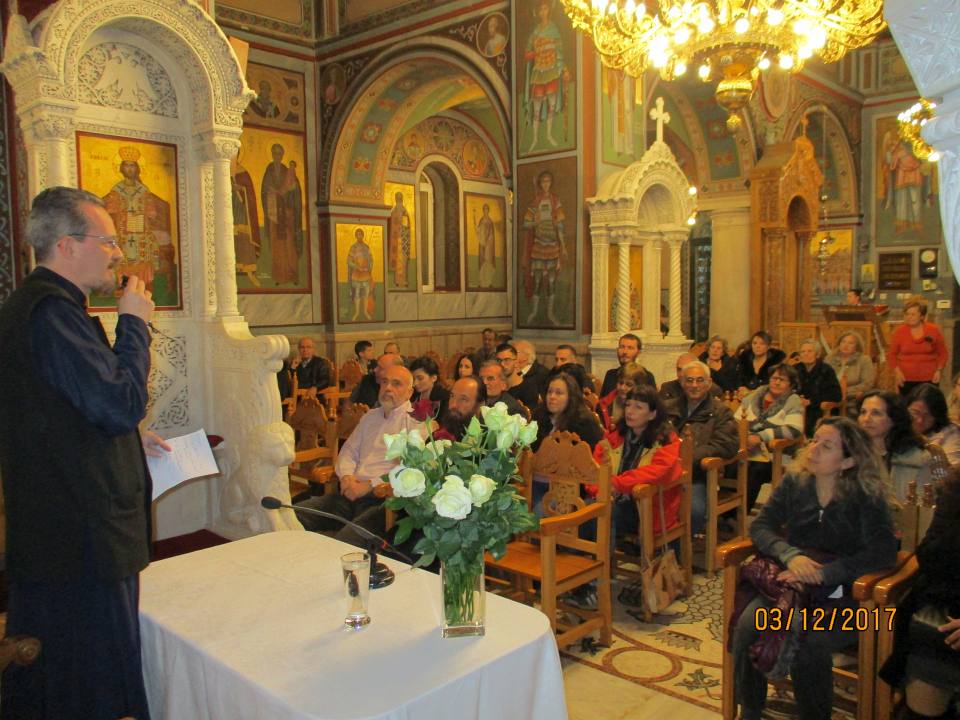 Σας περιμένουμε και στην επόμενη συνάντησή μας, στις 28 Ιανουαρίου 2018, αυτή τη φορά στον Ι. Ν. Αγίας Αικατερίνης Ιλίου, όπου ομιλητής θα είναι ο κ. Κυριάκος Βλασσόπουλος, Ψυχοθεραπευτής – Ομαδικός αναλυτής, και θα έχει ως θέμα: «Επείγουσα ανάγκη λίγης χαράς. Βασικές ψυχικές δυνατότητες».