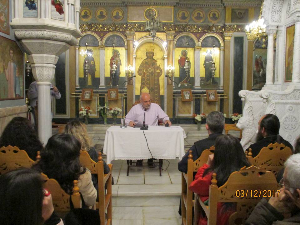Ομιλητής ήταν ο κ. Γεώργιος Κίσσας, Ψυχολόγος, και συγγραφέας. Η ομιλία είχε ως θέμα : «Η κρίση του σύγχρονου άνδρα».