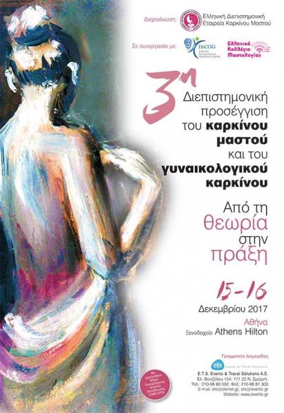 H Ελληνική Διεπιστημονική Εταιρεία Καρκίνου Μαστού διοργάνωσε την «3η διεπιστημονική προσέγγιση του καρκίνου μαστού και του γυναικολογικού καρκίνου. Από τη θεωρία στην πράξη», στις 15 και 16 Δεκεμβρίου 2017, στο Ξενοδοχείο Hilton Athens.