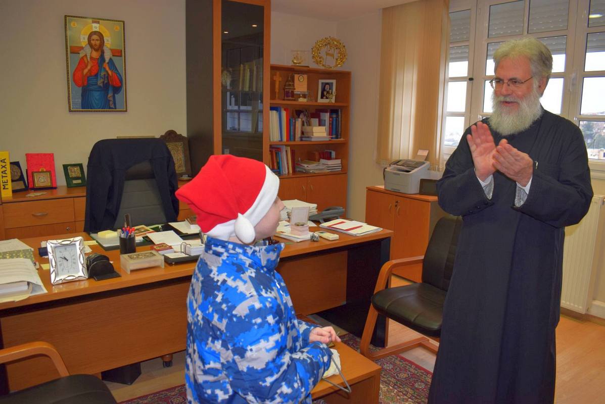 Ο κ. Αθηναγόρας έδειξε τη χαρά του και την ευαρέσκεια στα παιδιά, αντάλλαξε ευχές και τους έδωσε δώρα.