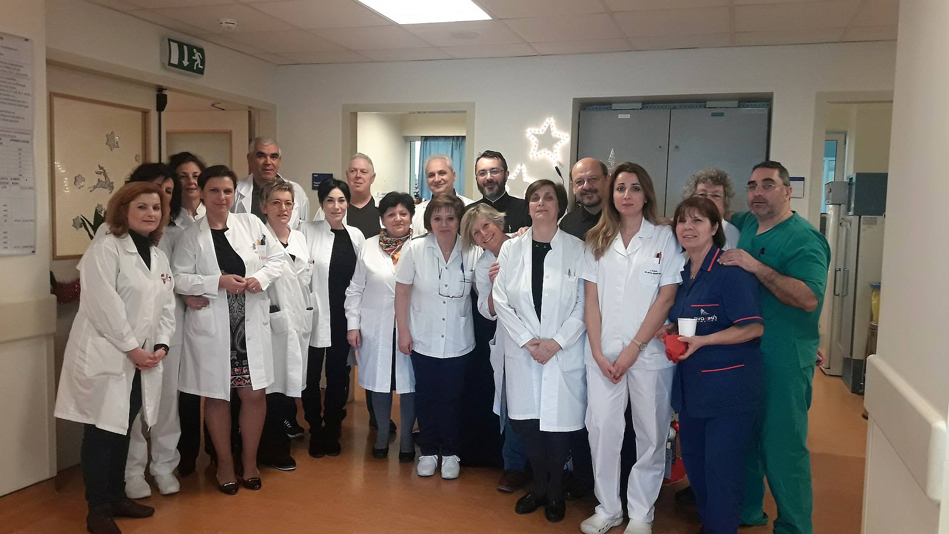 Η ευλογία της πρωτοχρονιάτικης πίτας έγινε με πρόσκληση της Διευθύντριας του τμήματος Αιμοδοσίας του Γενικού Ογκολογικού Νοσοκομείου Γ.Ο.Ν.Κ. «οι Άγιοι Ανάργυροι» κας Γάφου Ανθής, Αιματολόγου, από τον πανοσ. αρχιμ. Δρ. Θεοδόσιο Μανώλη, εφημέριο του Νοσοκομείου Γ.Ο.Ν.Κ «οι Άγιοι Ανάργυροι» (που είναι και ο ίδιος εθελοντής αιμοδότης), ο οποίος πέραν των ευχών για υγεία, αγάπη και ευτυχία, επικεντρώθηκε προς όλους τους παρευρισκόμενους, (ιατρικό, νοσηλευτικό και τεχνικό προσωπικό) για την κορυφαία για όλους μας κοινωνική προσφορά που αποτελεί αναμφισβήτητα η Εθελοντική Αιμοδοσία.