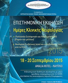 Πραγματοποιήθηκε από την Νευρολογική κλινική του Γενικού Νοσοκομείου Νίκαιας –Πειραιά, “Αγιος Παντελεήμων”, σε συνεργασία και υπό την αιγίδα της Ελληνικής Εταιρείας ΗΕΓραφίας και Κλινικής Νευροφυσιολογίας, το Συνέδριο με θέμα «ΗΜΕΡΕΣ ΚΛΙΝΙΚΗΣ ΝΕΥΡΟΛΟΓΙΑΣ». Η εκδήλωση έλαβε χώρα στο Ναύπλιο από 18- 20 Σεπτεμβρίου 2015. Οι Οι δυο βασικές θεματικές ενότητες του Συνεδρίου αφορούσαν την Πολλαπλή Σκλήρυνση, με ό,τι νεώτερο ισχύει, σε συνδυασμό με τα Νοσήματα του φάσματος ΝΜΟ καθώς επίσης και τα νοσήματα του Συνδετικού ιστού.