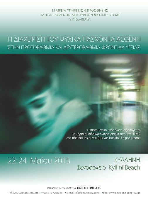 Πραγματοποιήθηκε και συγκεκριμένα από 22/4 - 24/5/2015 στη Κυλλήνη, το Πανελλήνιο Συνέδριο Διαχείρισης του Ψυχικά Πάσχοντα ασθενή στην Πρωτοβάθμια και Δευτεροβάθμια Φροντίδα Υγείας. Το Συνέδριο πραγματοποιήθηκε υπο την αιγίδα της εταιρείας (Υ.ΠΟ.ΛΕΙ.ΨΥ.)