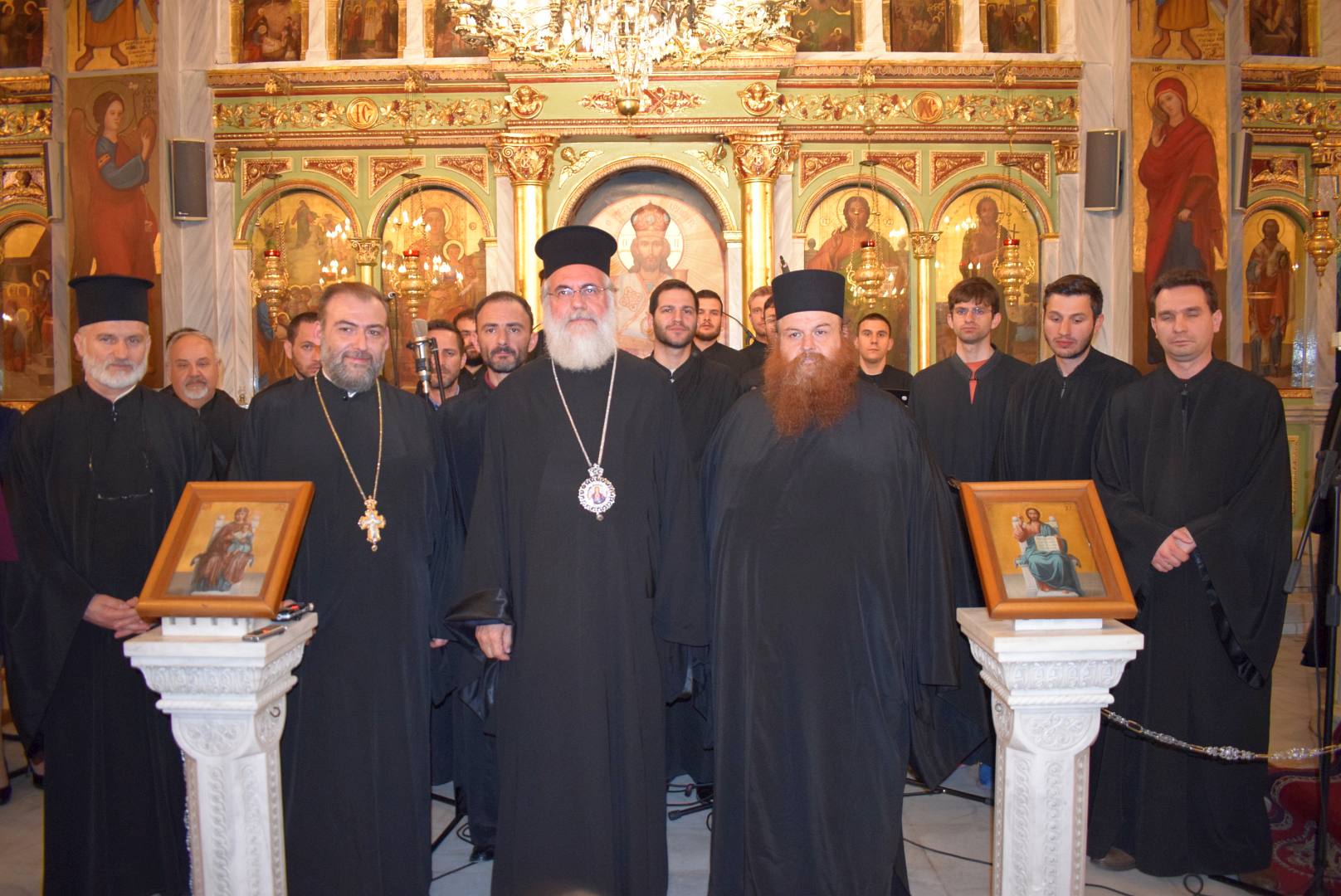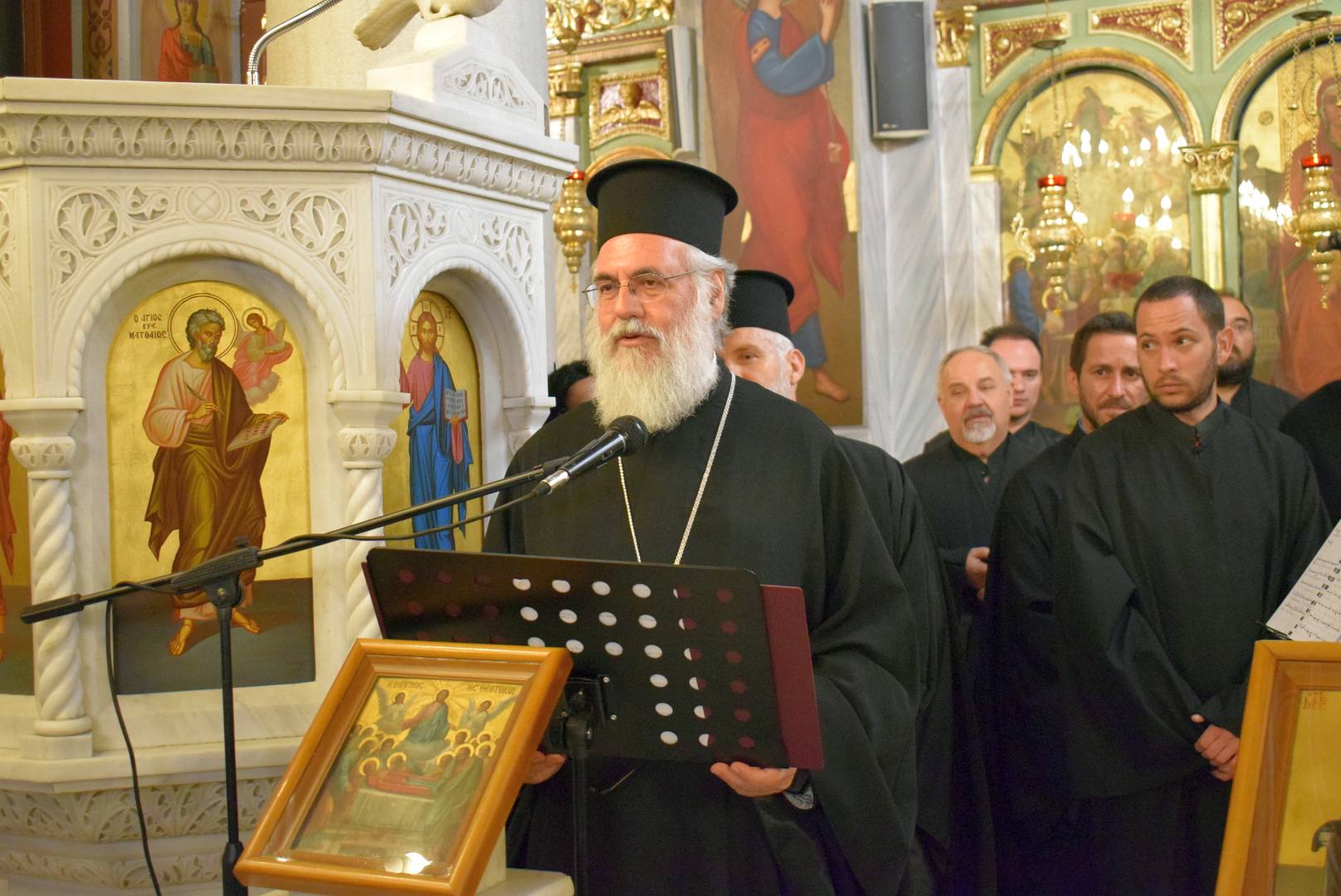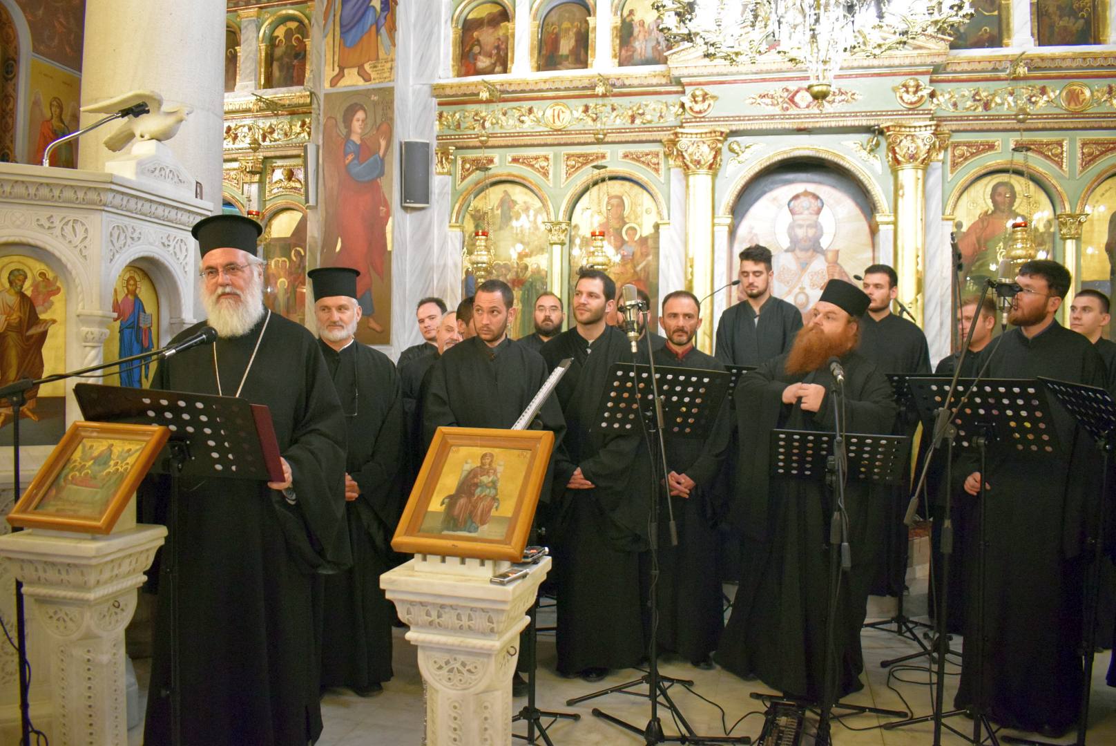 Τη συναυλία παρακολούθησε ο Σεβασμιώτατος Μητροπολίτης Ιλίου, Αχαρνών και Πετρουπόλεως κ. Αθηναγόρας, ο οποίος αφού συνεχάρη τον χοράρχη και τους χορωδούς, μίλησε για την αγάπη την οποία τρέφει για το νησί της Κέρκυρας και τις αναμνήσεις που έχει από τη μοναχική κουρά του στην Ι. Μ. Παντοκράτορος Σωτήρος Αγρού Κέρκυρας. Ακολούθησαν ανταλλαγές αναμνηστικών δώρων.