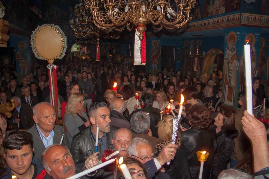 Αθρόα ήταν και εφέτος η προσέλευση των πιστών κάθε ηλικίας, μικρών και μεγάλων, οι οποίοι προσήλθαν για να παρακολουθήσουν την Τελετή της Αναστάσεως και την Αναστάσιμη Θεία Λειτουργία, κρατώντας λαμπάδες αναμμένες με το ανέσπερο Φως και ακούγοντας το χαρμόσυνο παιάνα της Αναστάσεως ο οποίος παράλληλα αποτελεί και το συγκλονιστικό μήνυμα της θριαμβευτικής νίκης του Κυρίου της ζωής επί του θανάτου, το «Χριστός Ανέστη».