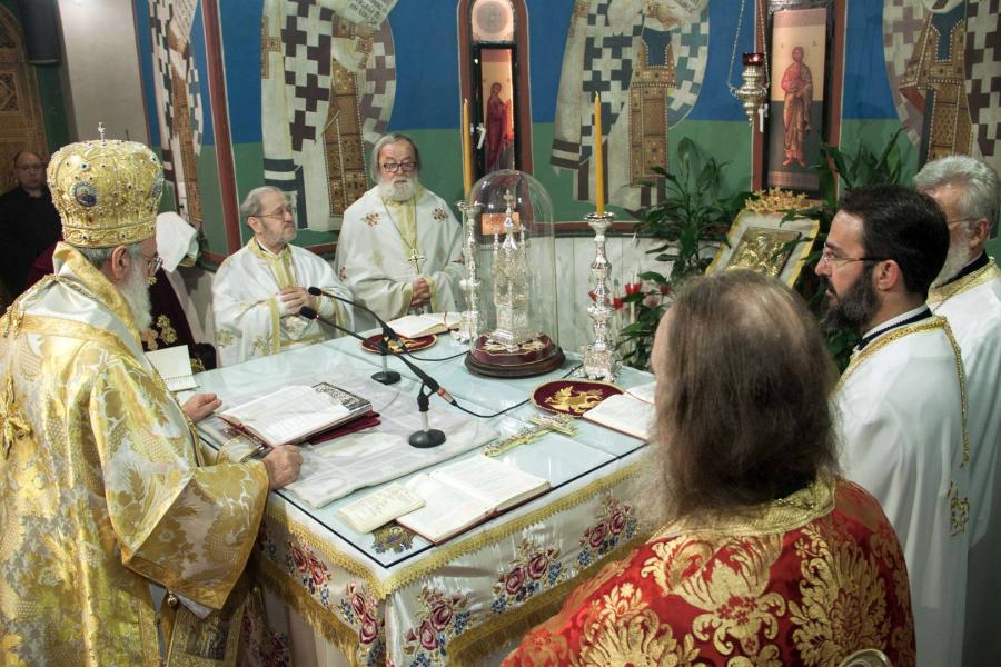 Τη Θεία Λειτουργία τέλεσε ο Σεβασμιώτατος Μητροπολίτης Ιλίου, Αχαρνών και Πετουπόλεως κ. Αθηναγόρας. Στο τέλος, διαβάστηκε ο Κατηχητικός Λόγος του Αγίου Ιωάννου του Χρυσοστόμου, ο υπέροχος αυτός λόγος που καταδεικνύει το ύψος της αγάπης του Κυρίου και της ανοιχτής πρόσκλησης που απευθύνει στην μετοχή της χαράς της Αναστάσεως. Λίγο πριν την απόλυση διαβάστηκε μάλιστα, η ειδική ευχή με την οποία ευλογούνται αυγά και τυρί και προσφέρονται ως ευλογία στους πιστούς.