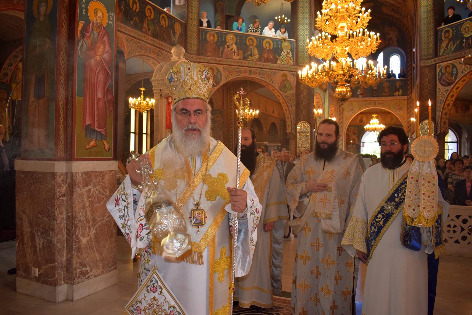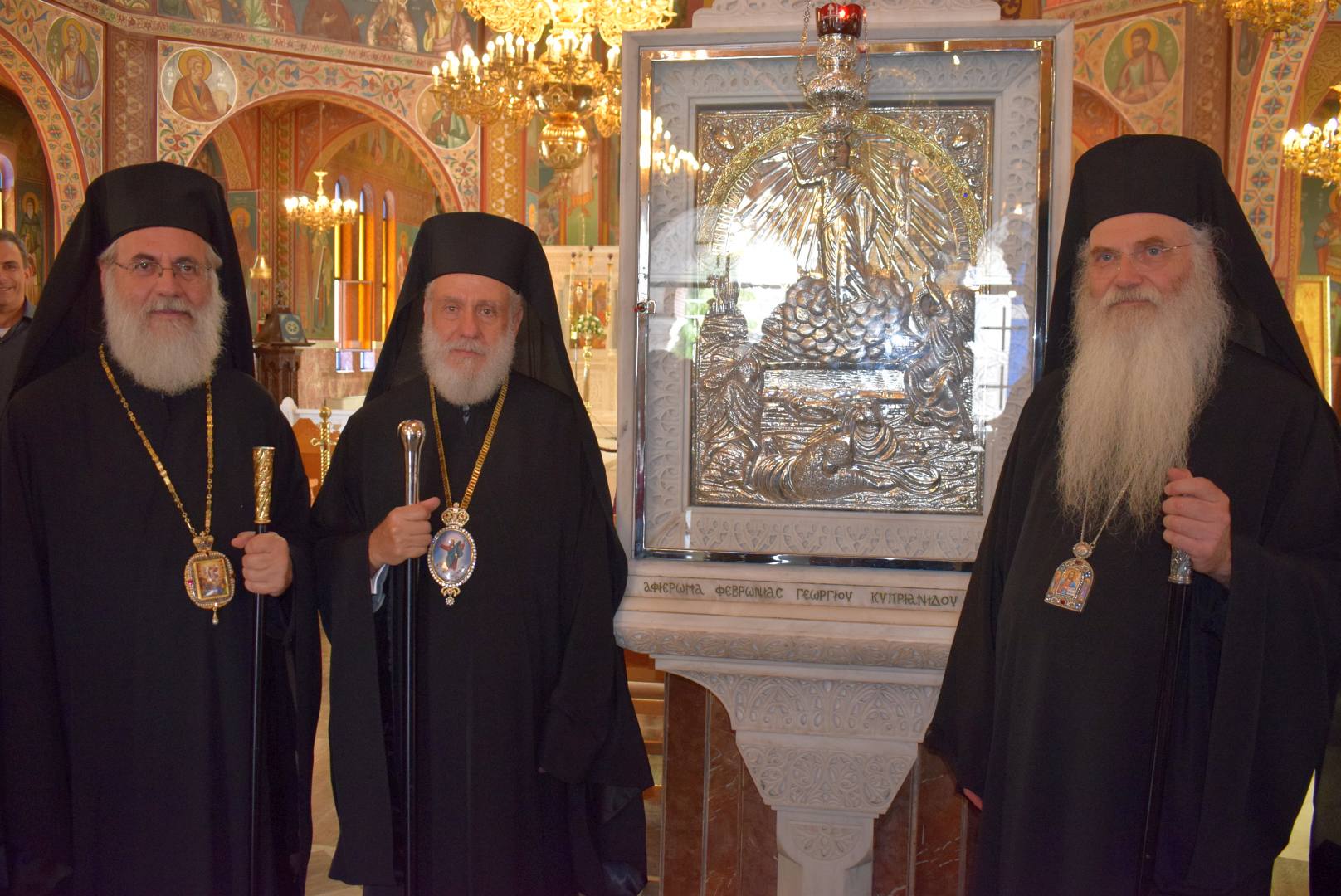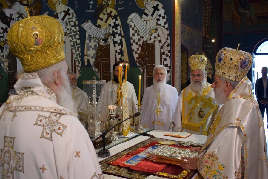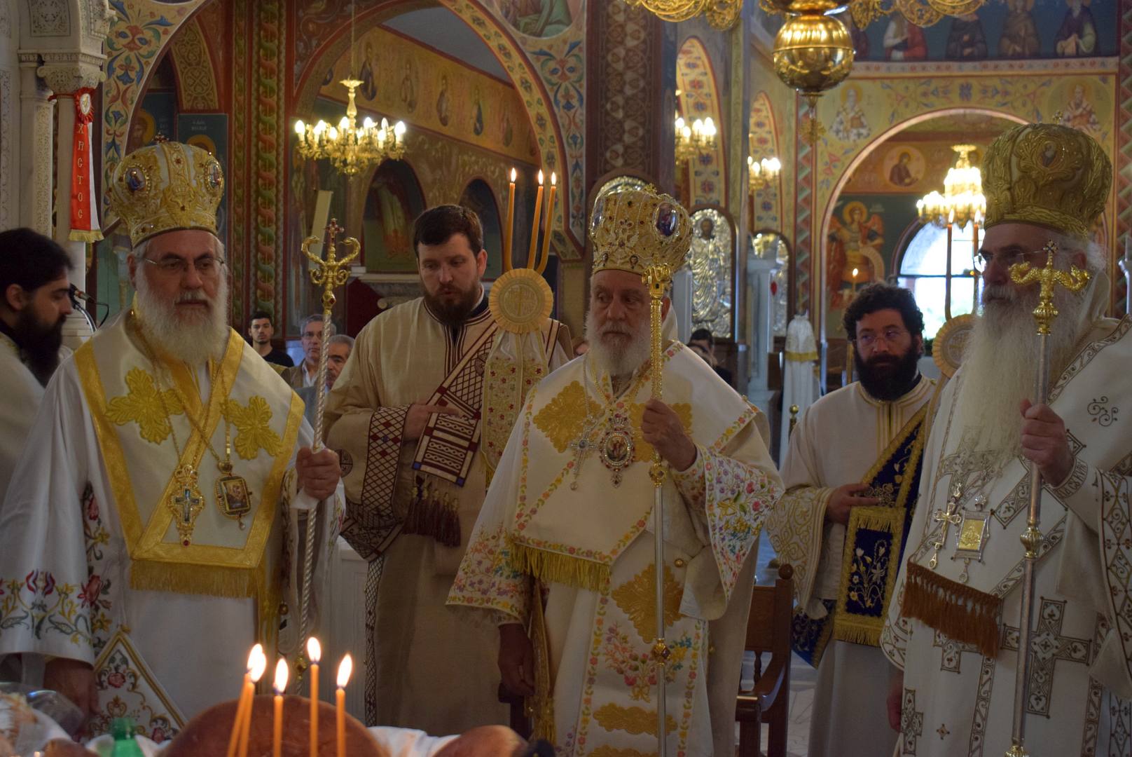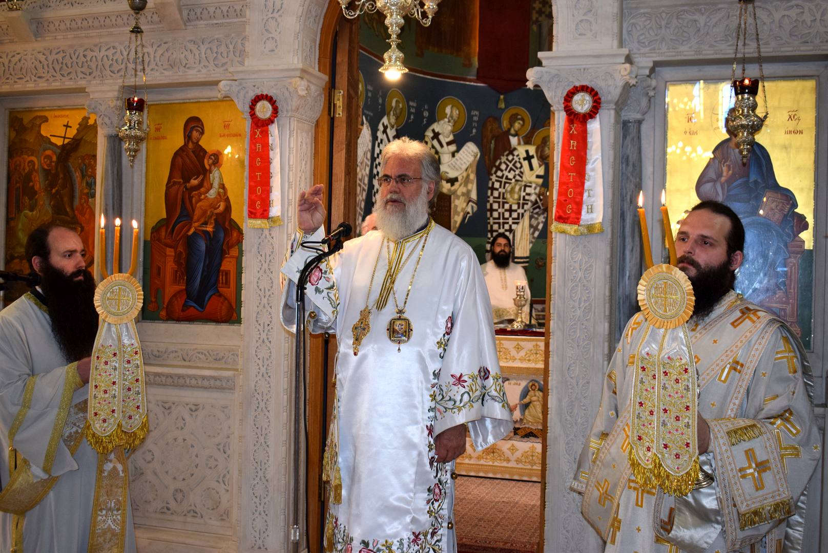 Στην Θεία Λειτουργία προεξήρχε ο Μητροπολίτης Σύρου κ. Δωρόθεος, ενώ συλλειτούργησαν οι Μητροπολίτες Ιλίου κ. Αθηναγόρας και ο οικείος Ποιμενάρχης Μεσογαίας κ. Νικόλαος.