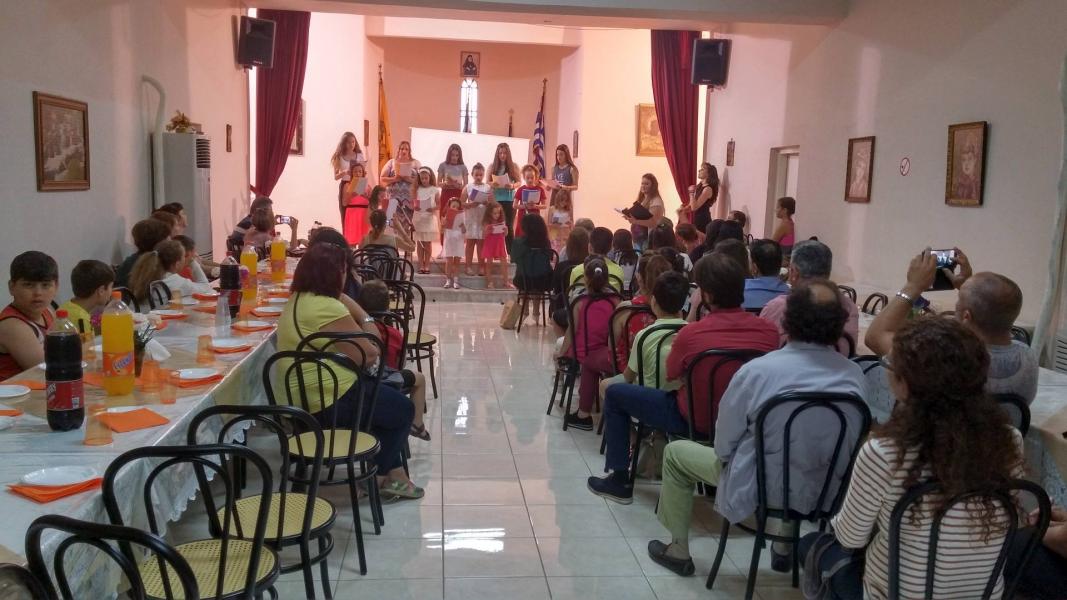 Τα παιδιά και οι κατηχητές οργάνωσαν μία εορτή λήξης, στην οποία ήταν προσκεκλημένοι οι γονείς και οι ενορίτες. Στο τέλος, ο εφημέριος του ναού π. Κωνσταντίνος Τόλιας, ευχαρίστησε τους συνεργάτες του κατηχητές και ευχήθηκε στα παιδιά καλό κι ευλογημένο καλοκαίρι.