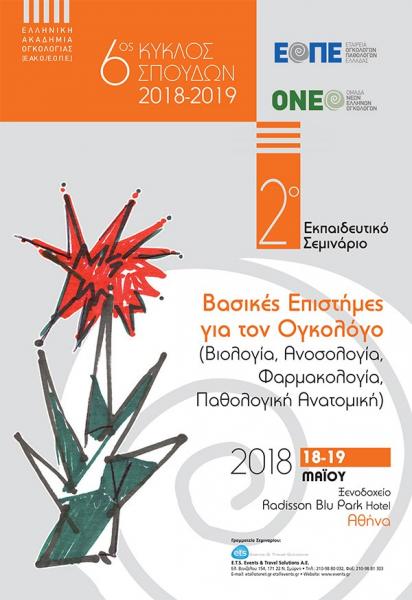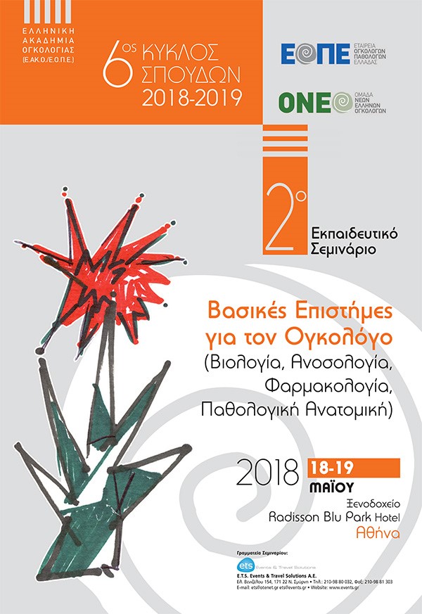 Πραγματοποιήθηκε στο Ξενοδοχείο Radisson Blu Park Hotel από 19 Μαΐου 2018 το 2ο σεμινάριο του 6ου Κύκλου Σπουδών της Ελληνικής Ακαδημίας Ογκολογίας (Ε.ΑΚ.Ο) αφιερωμένο στις βασικές γνώσεις βιολογίας, ανοσολογίας, παθολογικής ανατομικής και φαρμακολογίας, που πρέπει να κατέχει ο παθολόγος-ογκολόγος για την κατανόηση της ασθένειας, αλλά και για την επιλογή της κατάλληλης θεραπείας στην καθημερινή κλινική πράξη.