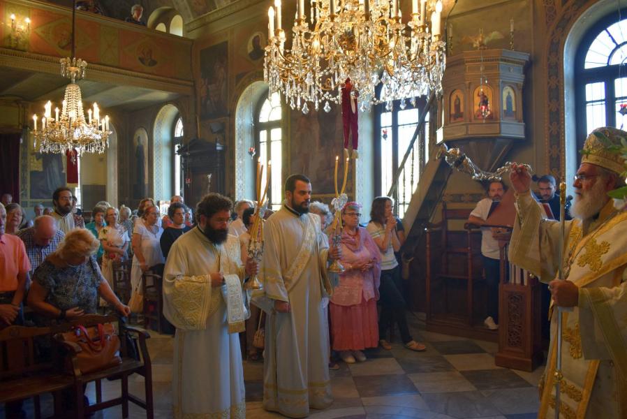 Στον Ι.Ν. Παναγίας Χρυσοκαστριωτίσσης τέλεσε τη Θ. Λειτουργία της αποδόσεως της εορτής της Κοιμήσεως της Θεοτόκου ο Σεβασμιώτατος Μητροπολίτης Ιλίου κ. Αθηναγόρας, κατόπιν αδείας του Μακαριωτάτου Αρχιεπισκόπου Αθηνών και πάσης Ελλάδος κ. Ιερωνύμου Β'.