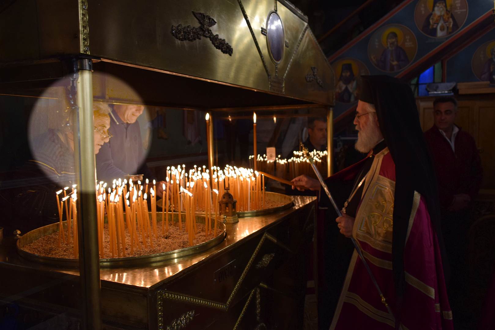 Χρόνια έζησε στην ενορία της Αγίας. Όμως, στο πανηγύρι του 2013, ανταποκρινόμενος σε ένα κάλεσμα που έλεγε να αναλάβουν τις εργασίες της πανηγύρεως εθελοντές, ήρθε στο ναό και δεν έφυγε ποτέ από τότε. Εθελοντής από καρδιάς. Άμισθος στη γη, με μισθό στον ουρανό. «Είμαι βοηθός νεωκόρου» έλεγε. Όταν τον «μαλώναμε» που κουραζόταν πολύ ή έκανε επικίνδυνα για τη σωματική του ακεραιότητα πράγματα, έπαιρνε αυστηρό βλέμμα. «Δεν παθαίνω τίποτε εγώ!» Είχε στραβώσει το σώμα του αλλά δεν σταματούσε να εργάζεται. Του προτείναμε να μην έρχεται κάθε μέρα, αλλά να του λέμε πότε έχουμε περισσότερη ανάγκη. Δεν άντεξε πάνω από μία εβδομάδα στο σπίτι. Ήρθε στο πόστο του λίγες ημέρες μετά.
