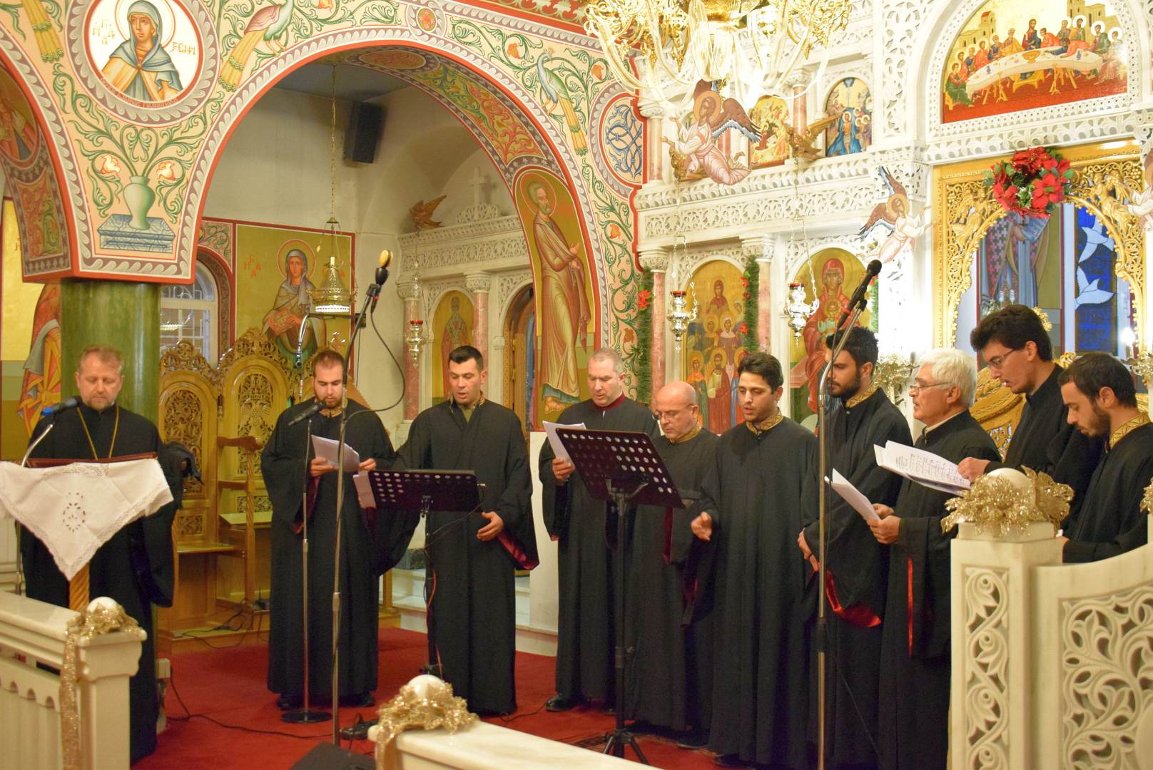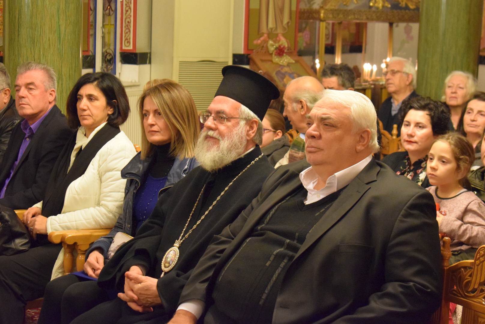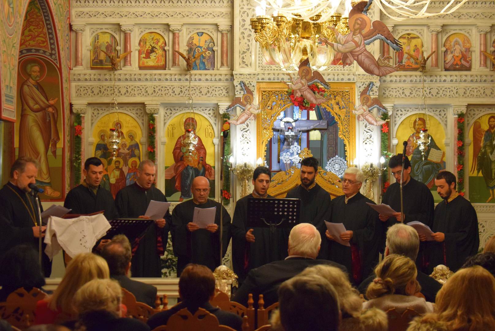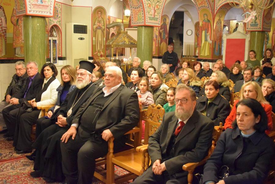 Τους ψαλμούς απέδωσε κλιμάκιο της χορωδίας «Ηχάδειν» και τα κάλαντα απέδωσε η γυναικεία χορωδία του ναού.