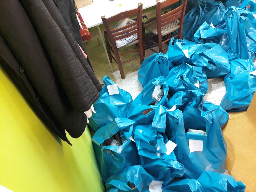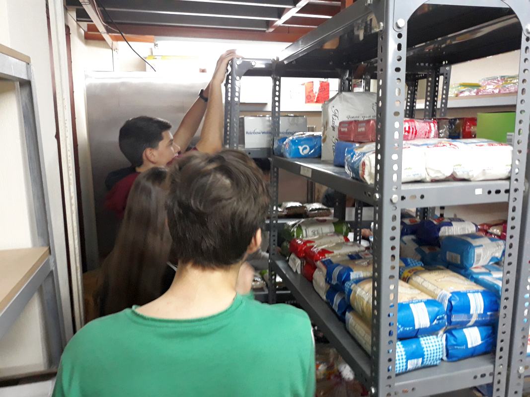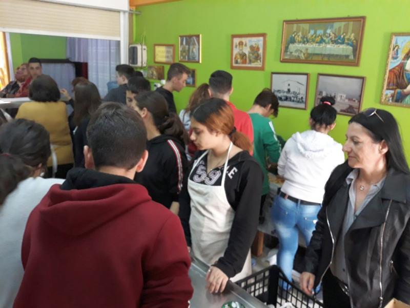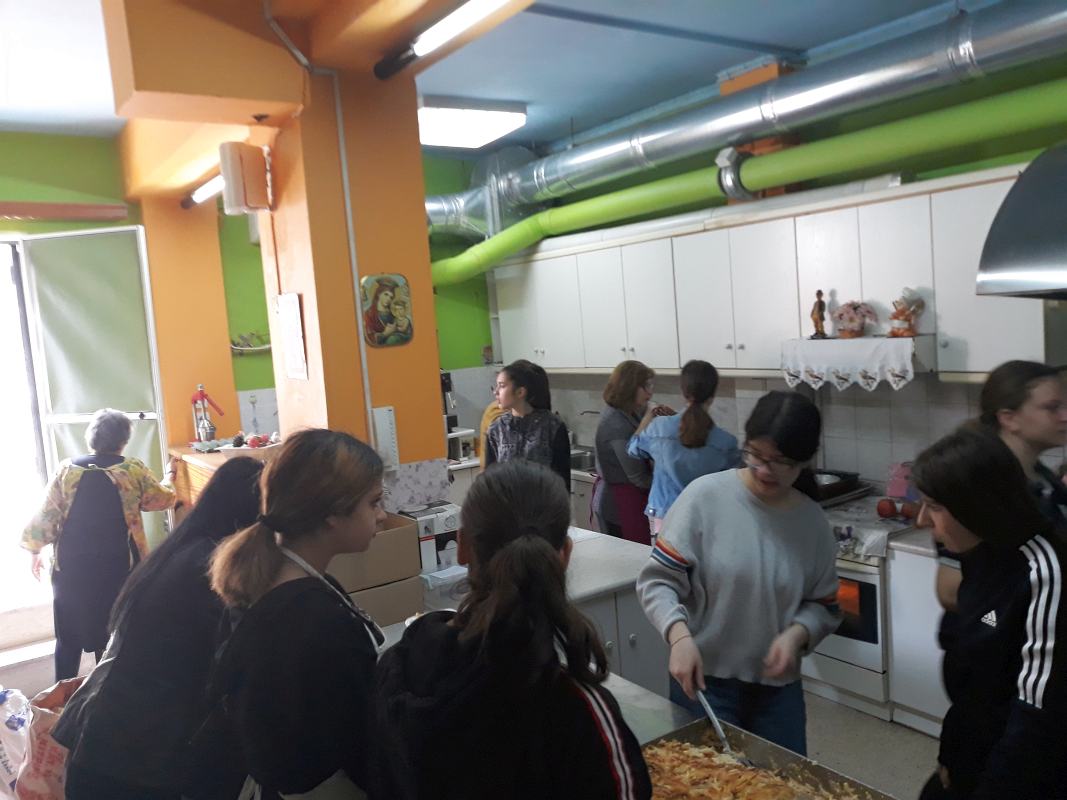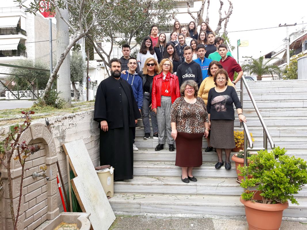 Τα παιδιά του 6ου Γυμνασίου Πετρουπόλεως που συμμετέχουν στο "Act Project", μαζί με τις καθηγήτριές τους, επισκεύθηκαν τη δομή σίτισης της Αγίας Τριάδας Πετρουπόλεως, στις 20 Μαρτίου 2019.