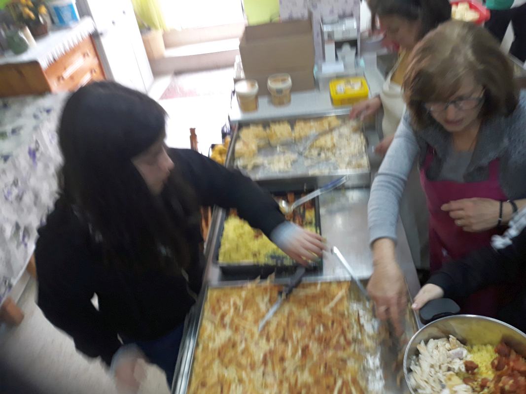 Μετά την ενημέρωση για τον τρόπο λειτουργίας και την Τράπεζα Τροφίμων, τα παιδιά μαγείρεψαν μακαρονόπιτα για 90 άτομα και μοίρασαν σακούλες με τρόφιμα για 120 άτομα. Με τη δράση αυτή, τα παιδιά του 6ου Γυμνασίου ευαισθητοποιήθηκαν στο να αντιλαμβάνονται την ανάγκη του συνανθρώπου τους και να γίνονται αλληλέγγυοι, με Χριστοκεντρική αγάπη.