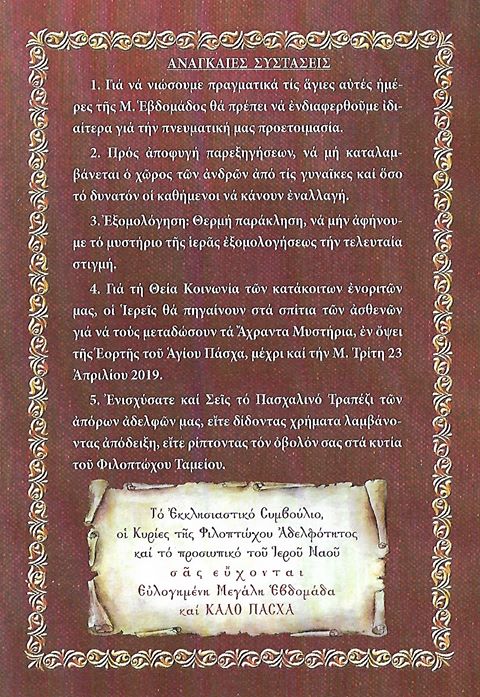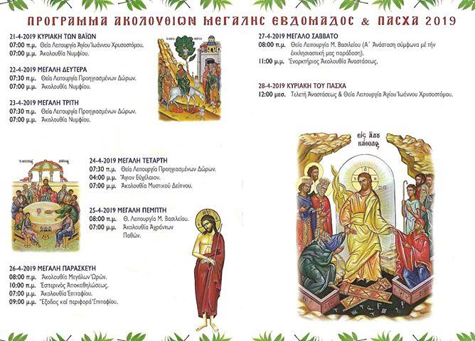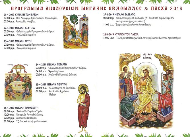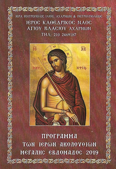 Δείτε το πρόγραμμα ακολουθιών του Ι. Καθεδρικό Ναό Αγ. Βλασίου Αχαρνών κατά τη Μεγάλη Εβδομάδα του 2019.