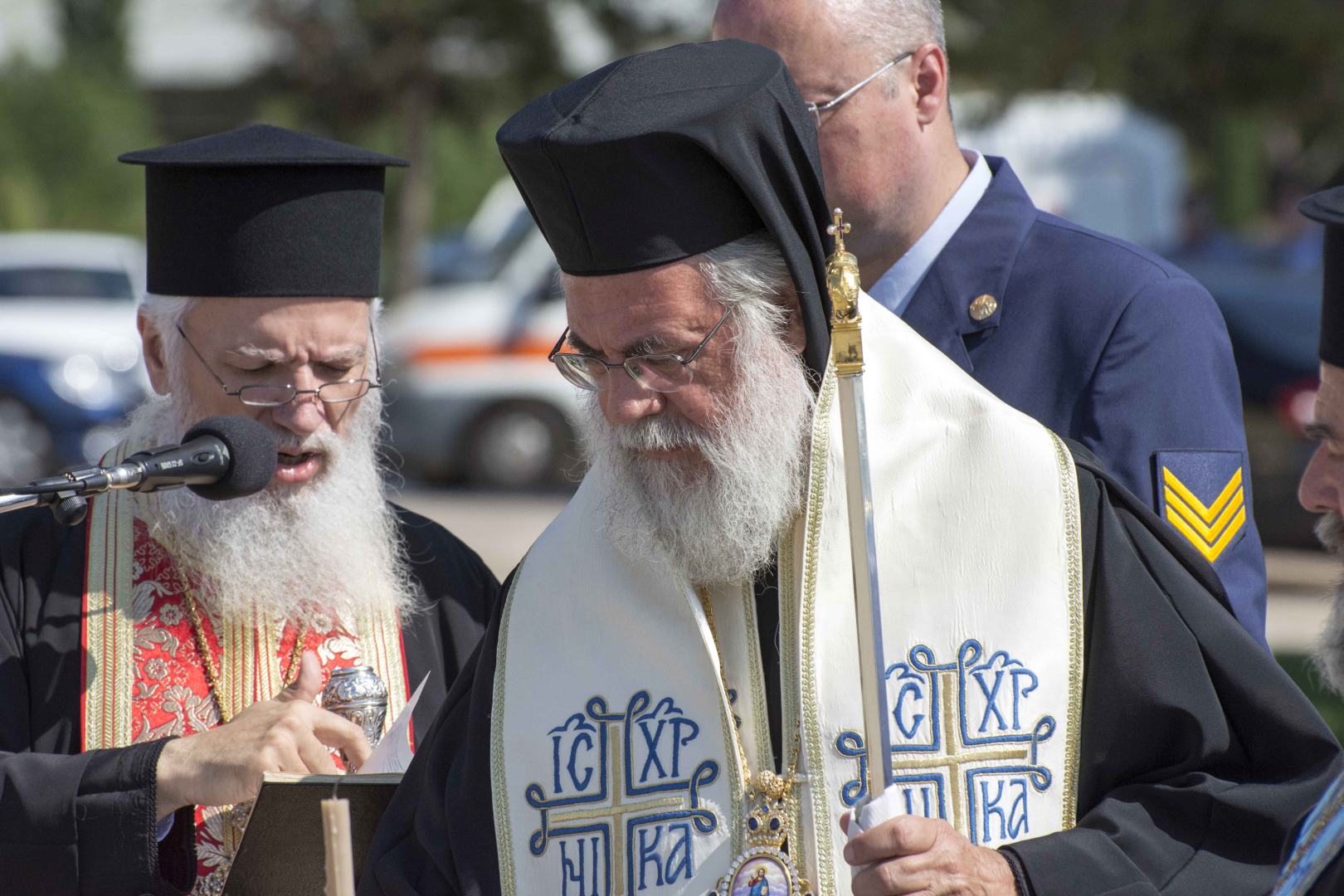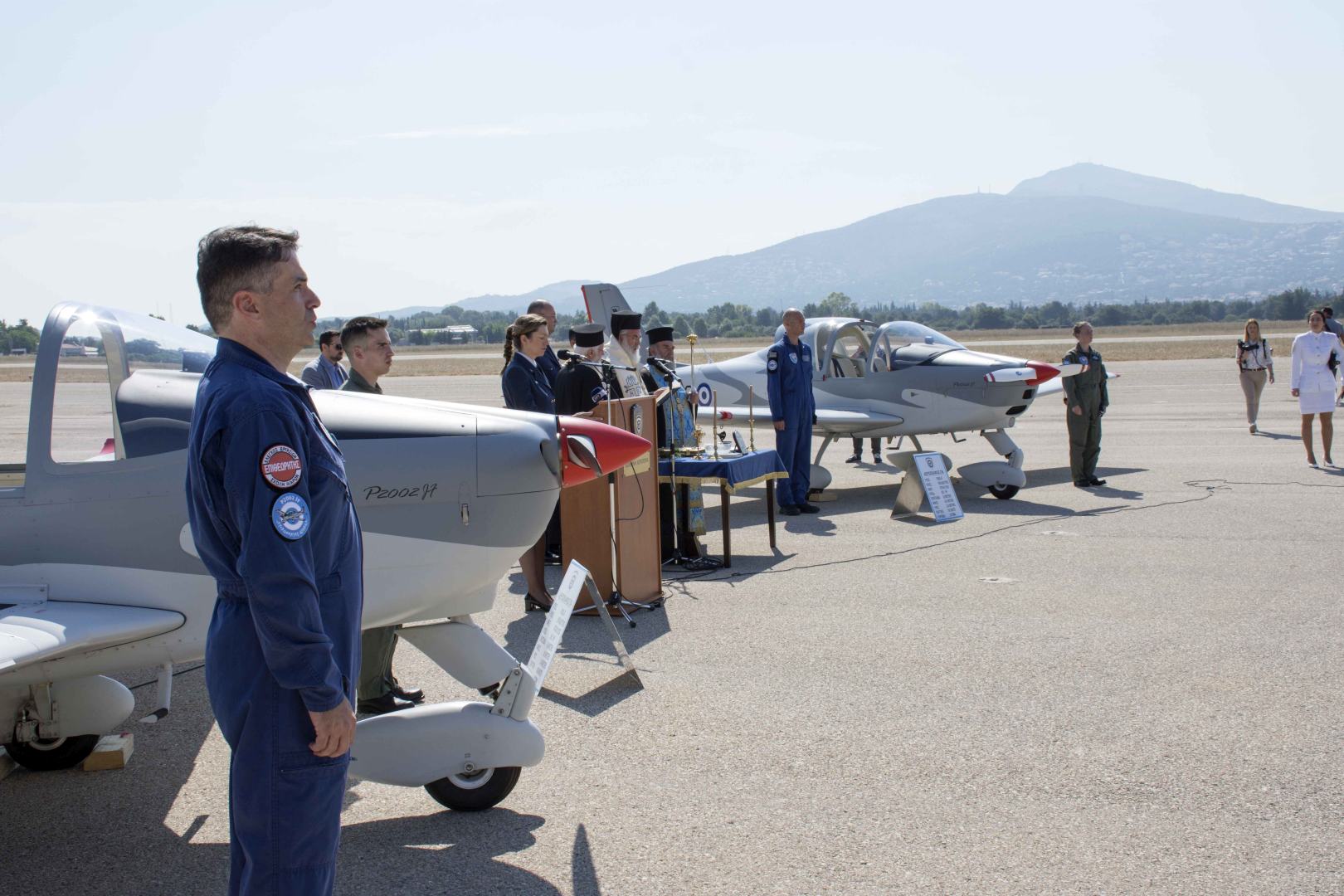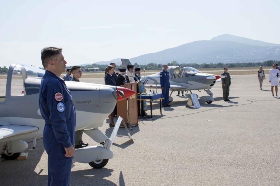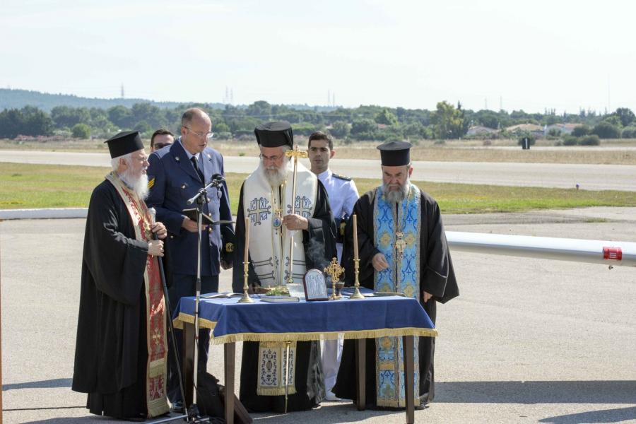 Παρουσία του Υπουργού Εθνικής Άμυνας Ευάγγελου Αποστολάκη, τελέστηκε ο αγιασμός κατά την τελετή παραλαβής των 12 νέων εκπαιδευτικών αεροσκαφών, από τον Σεβασμιώτατο Μητροπολίτη Ιλίου κ. Αθηναγόρα.