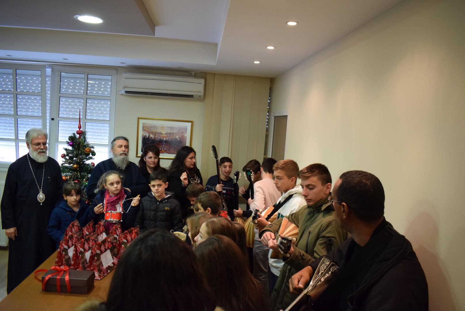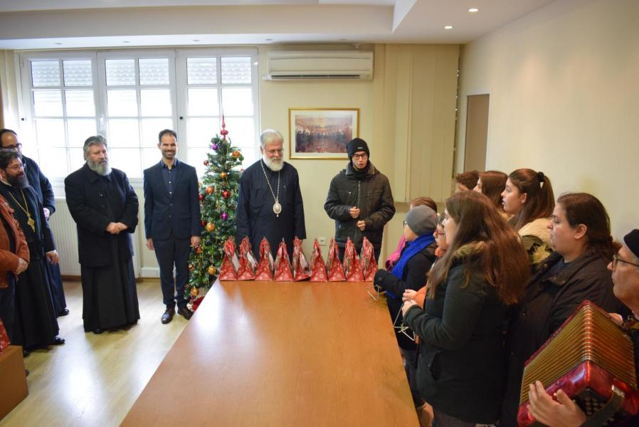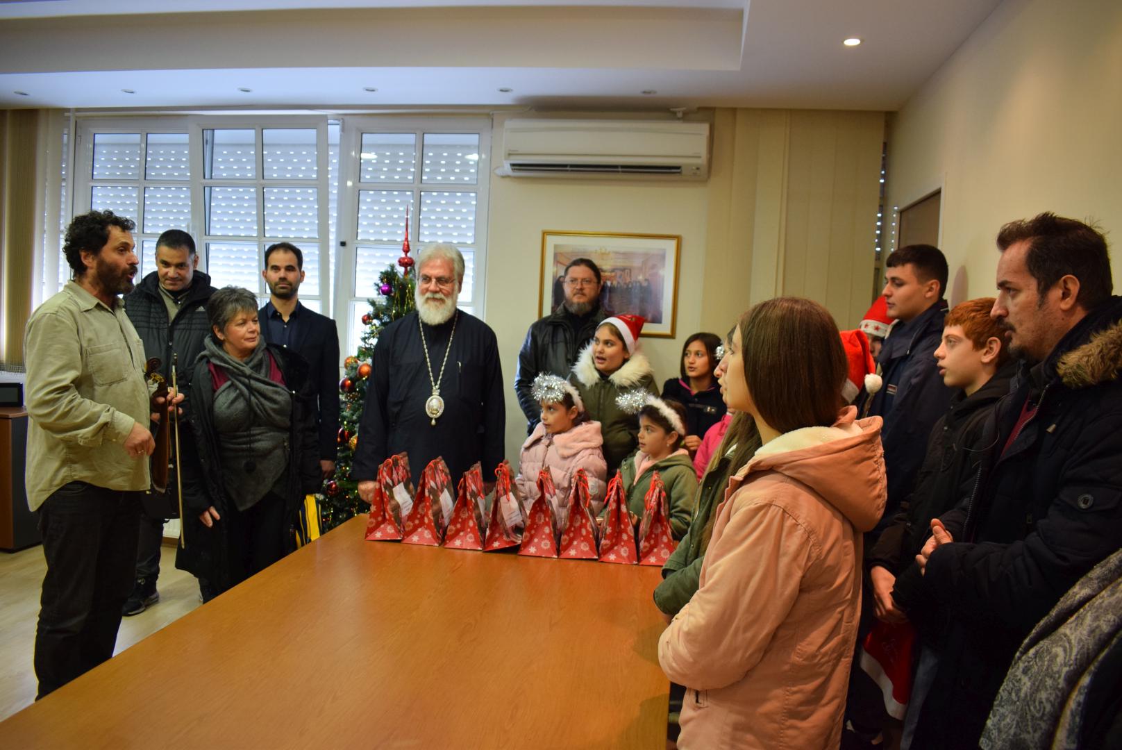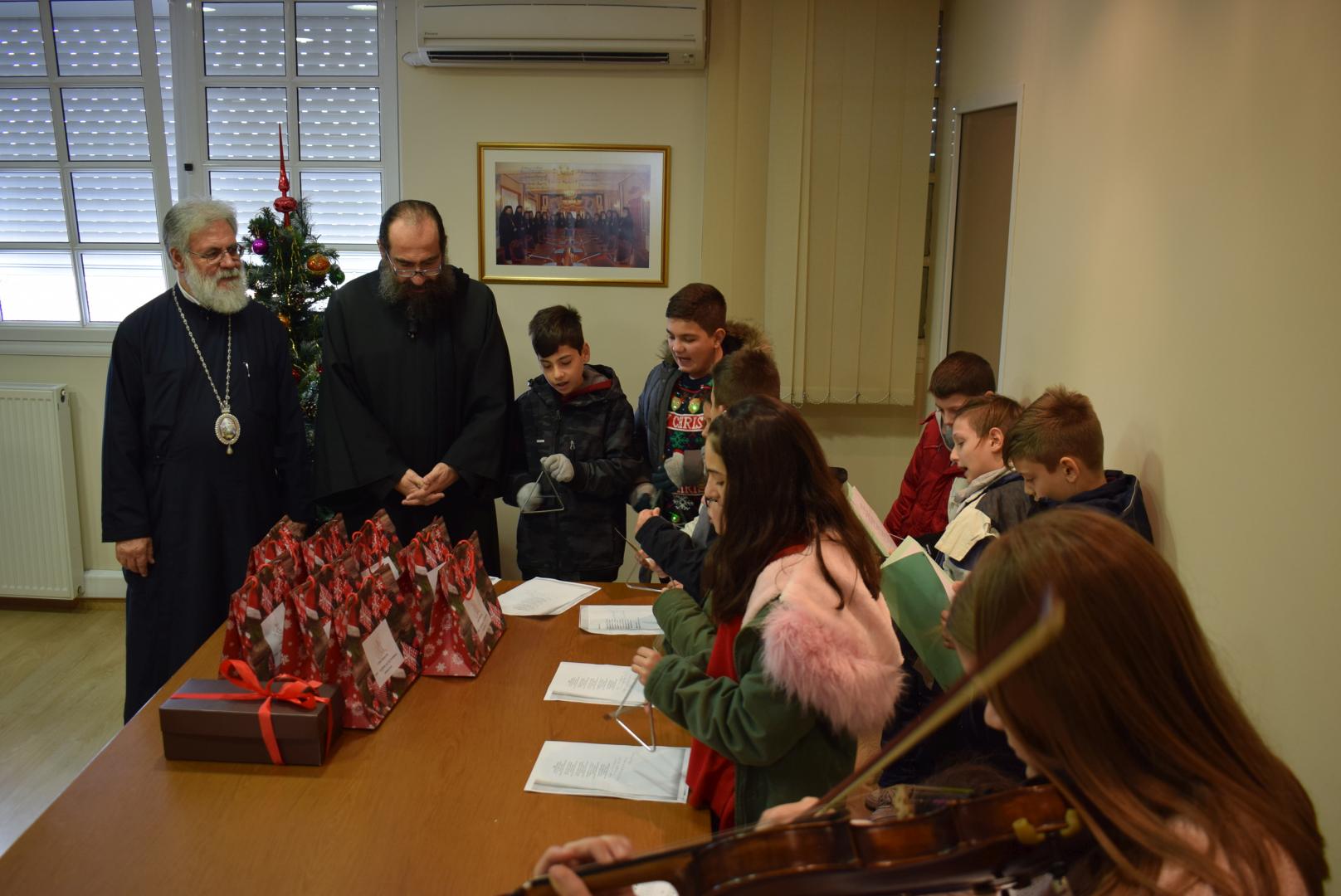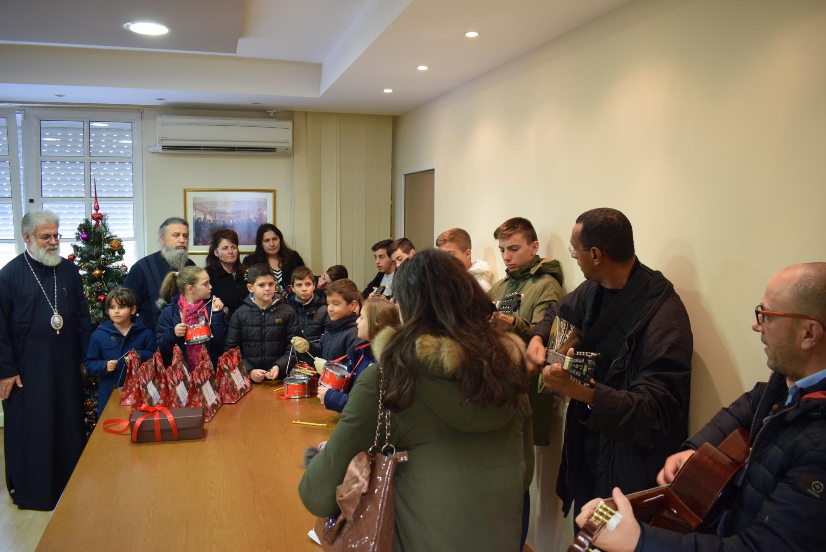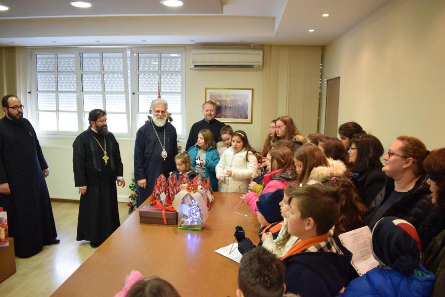 Νεανικές φωνές με τρίγωνα και μουσικά όργανα έψαλλαν τα κάλαντα των ημερών, στον Σεβασμιώτατο Μητροπολίτη Ιλίου κ. Αθηναγόρα, στα γραφεία της Μητροπόλεως στο Καματερό.