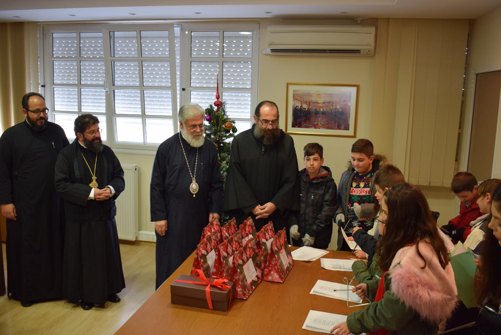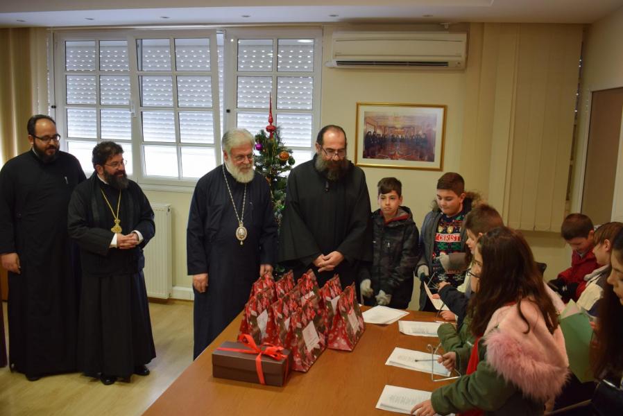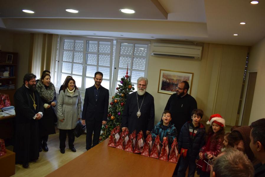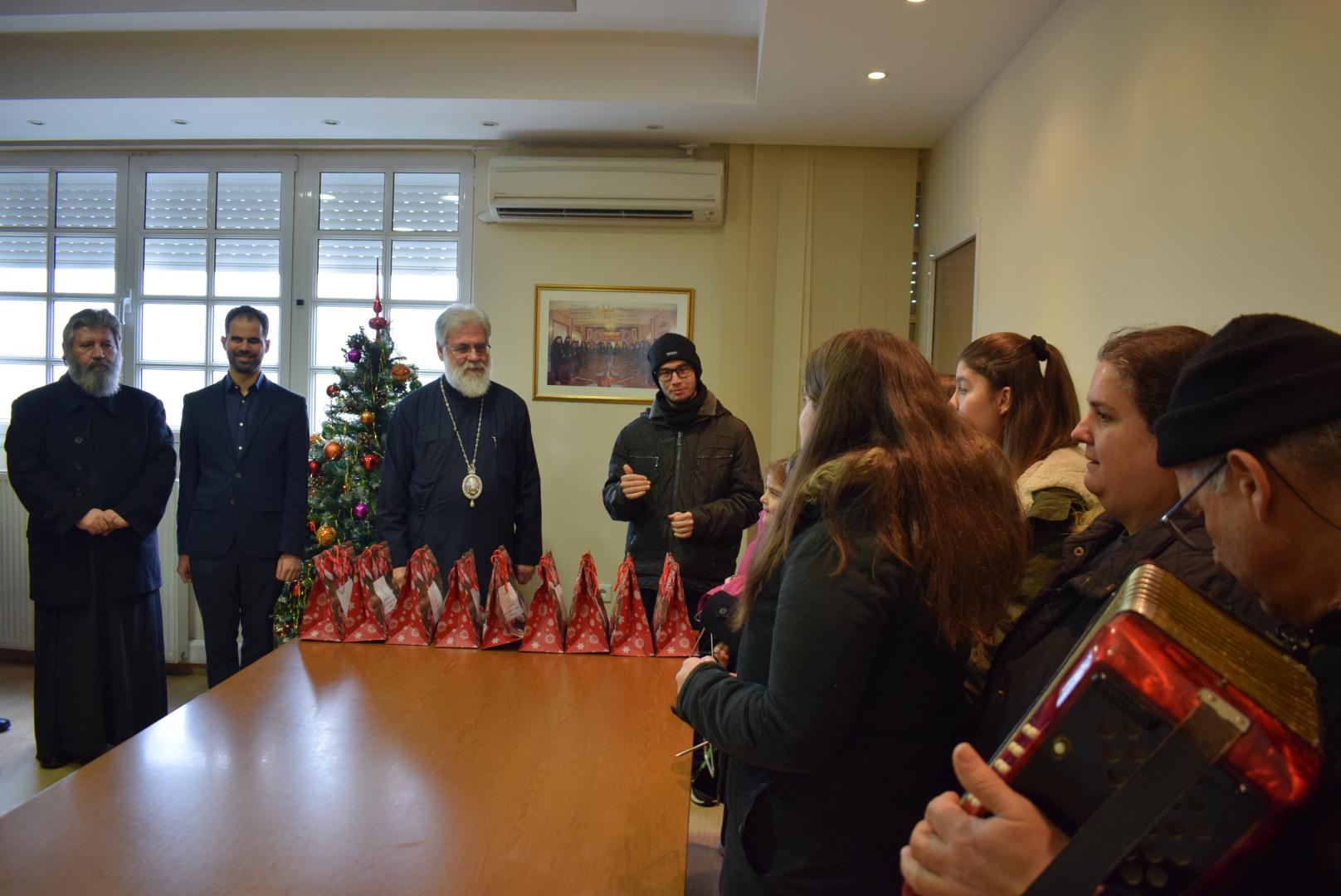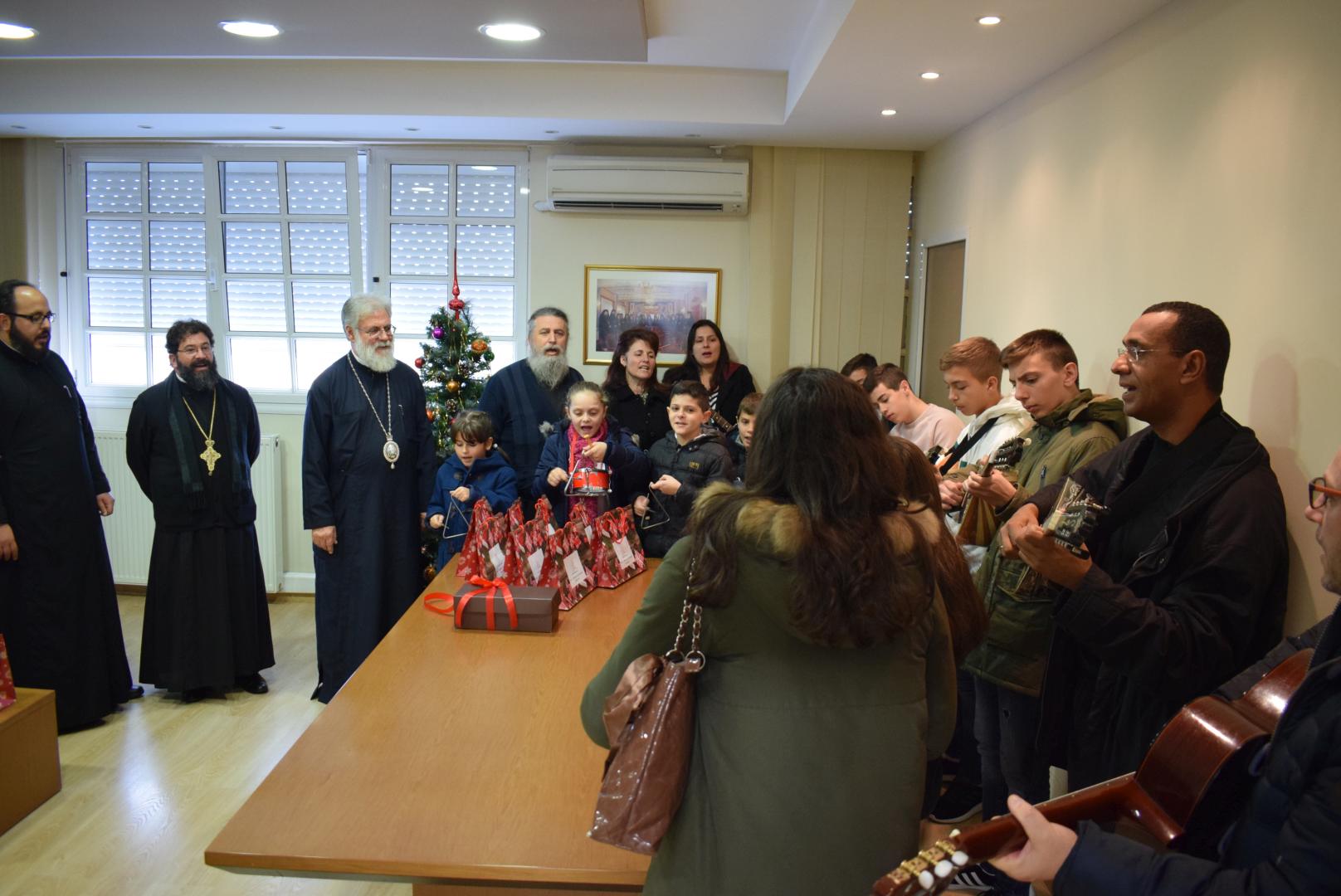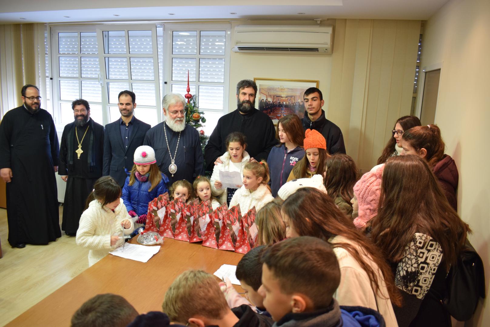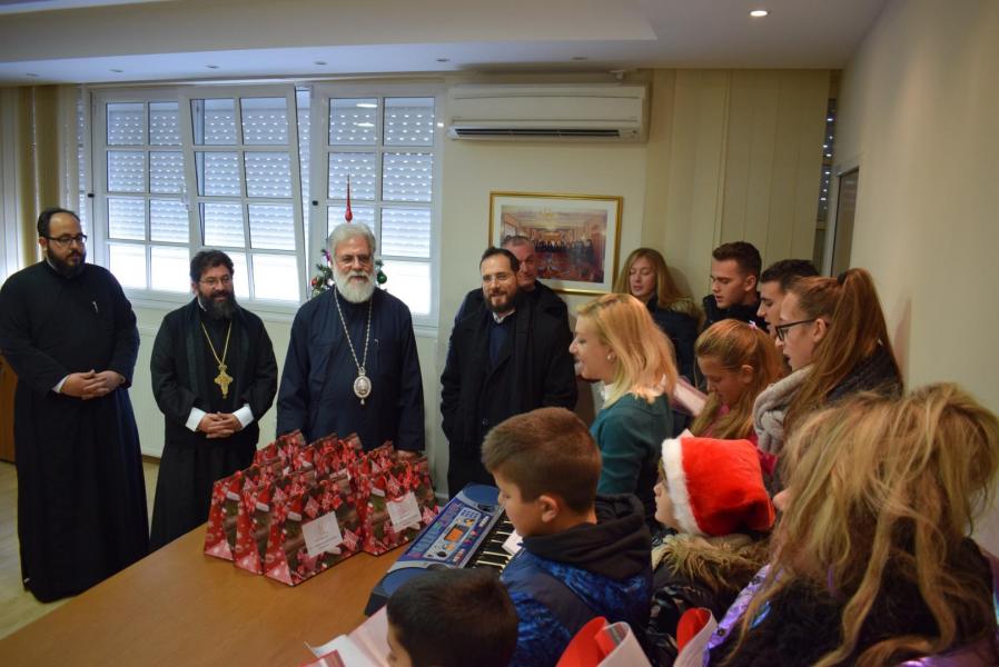 Νεανικές φωνές με τρίγωνα και μουσικά όργανα έψαλλαν τα κάλαντα των ημερών, στον Σεβασμιώτατο Μητροπολίτη Ιλίου κ. Αθηναγόρα, στα γραφεία της Μητροπόλεως στο Καματερό.