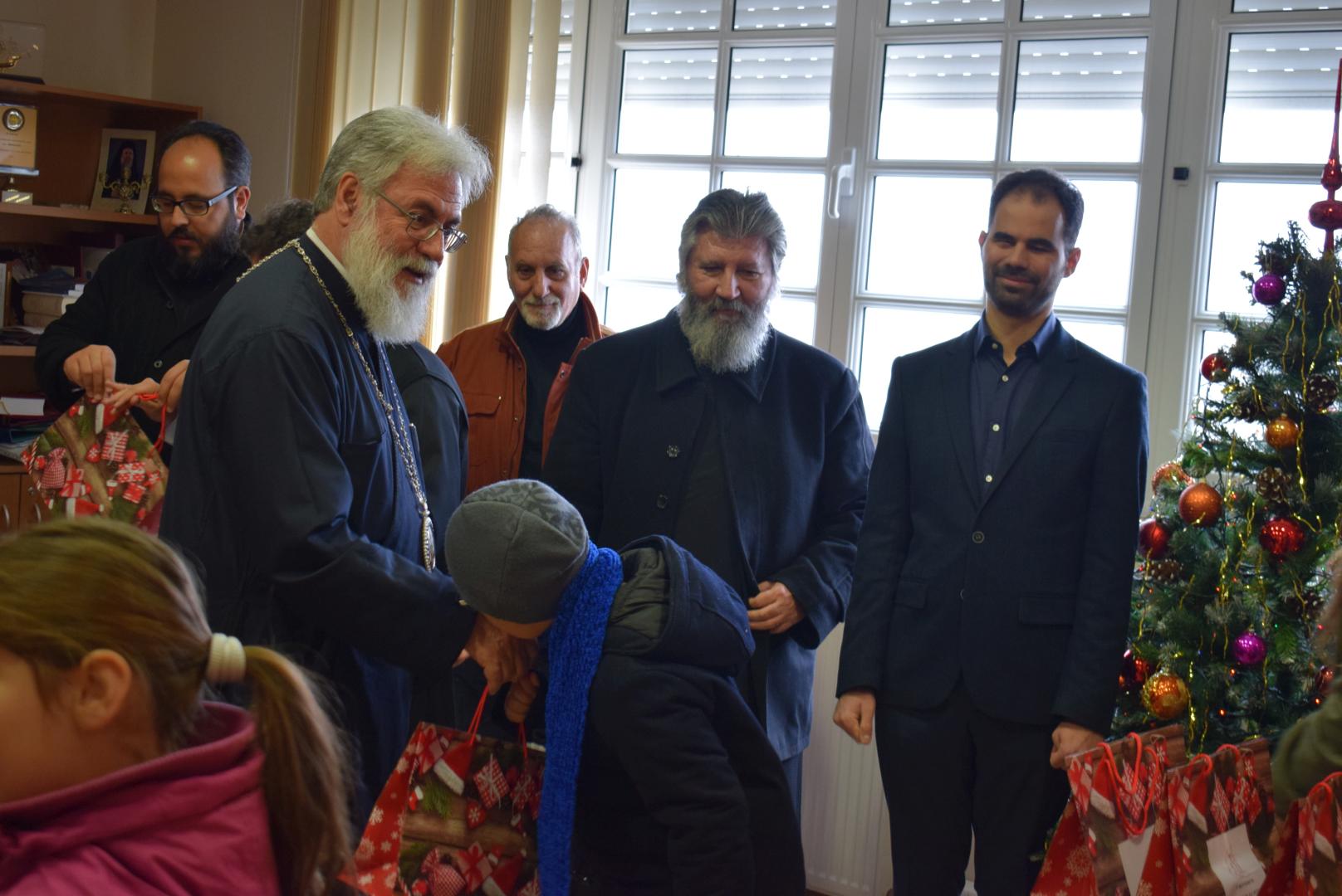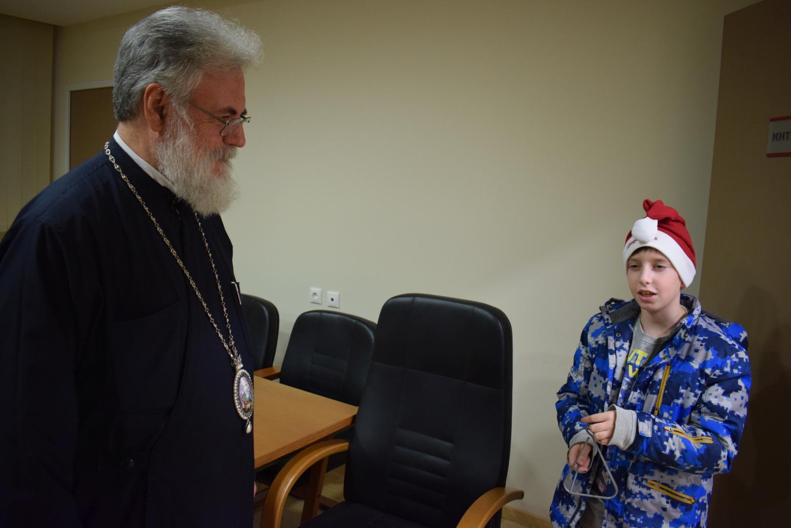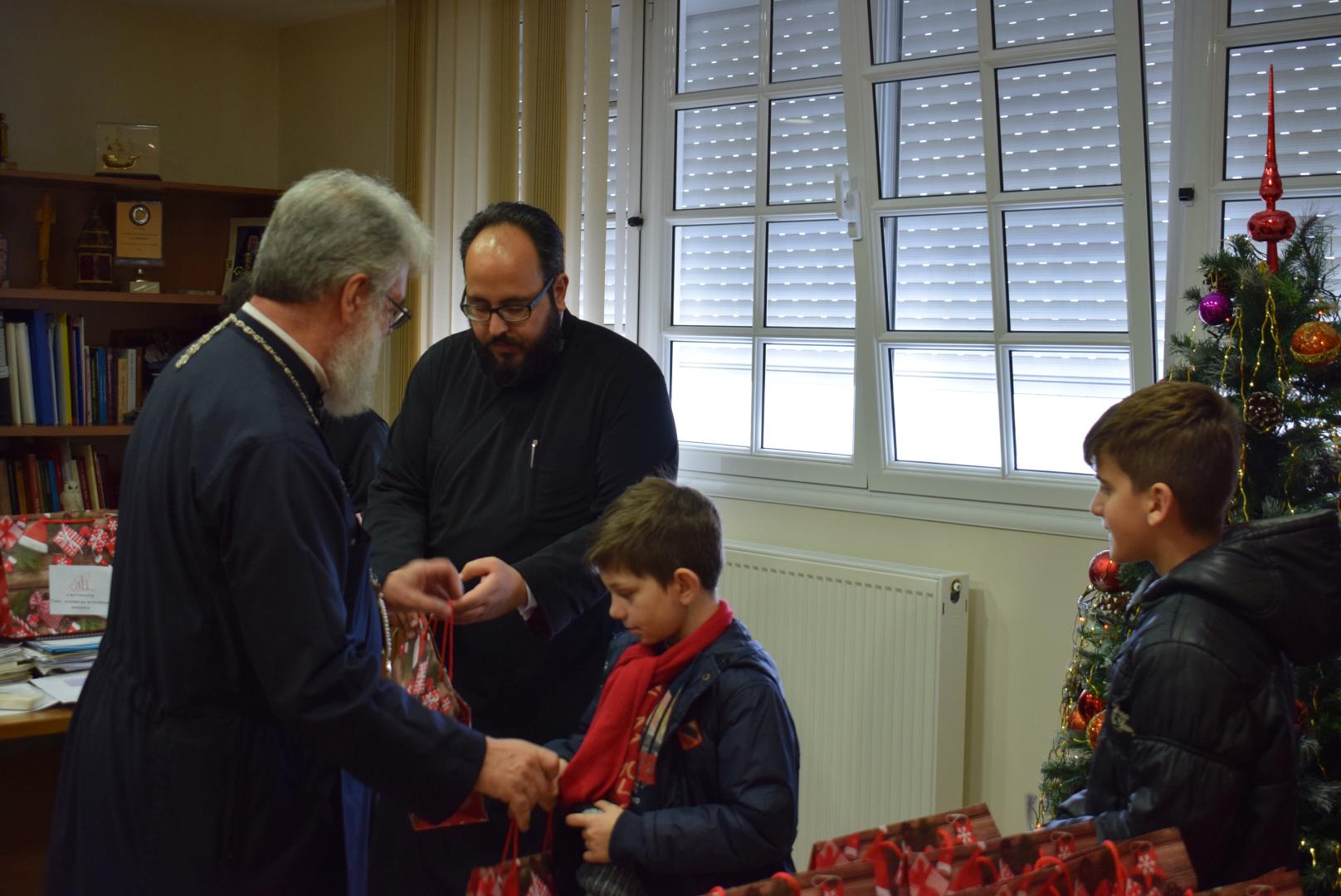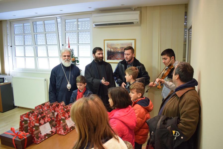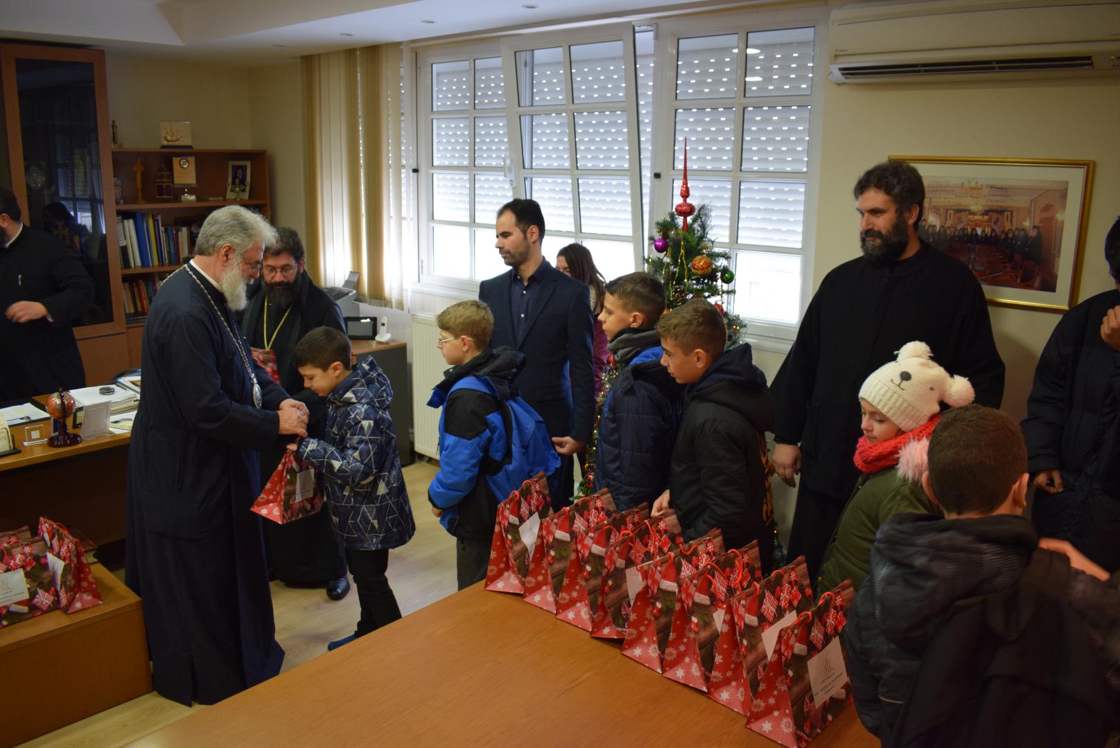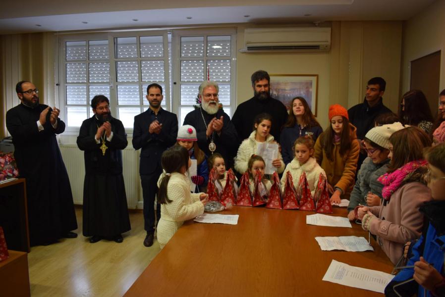 Νεανικές φωνές με τρίγωνα και μουσικά όργανα έψαλλαν τα κάλαντα των ημερών, στον Σεβασμιώτατο Μητροπολίτη Ιλίου κ. Αθηναγόρα, στα γραφεία της Μητροπόλεως στο Καματερό.