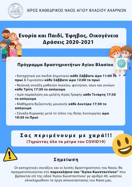 Ξεκινούν οι δραστηριότητες της ενορίας του Αγίου Βλασίου Αχαρνών για το Εκκλησιαστικό έτος 2020-2021.