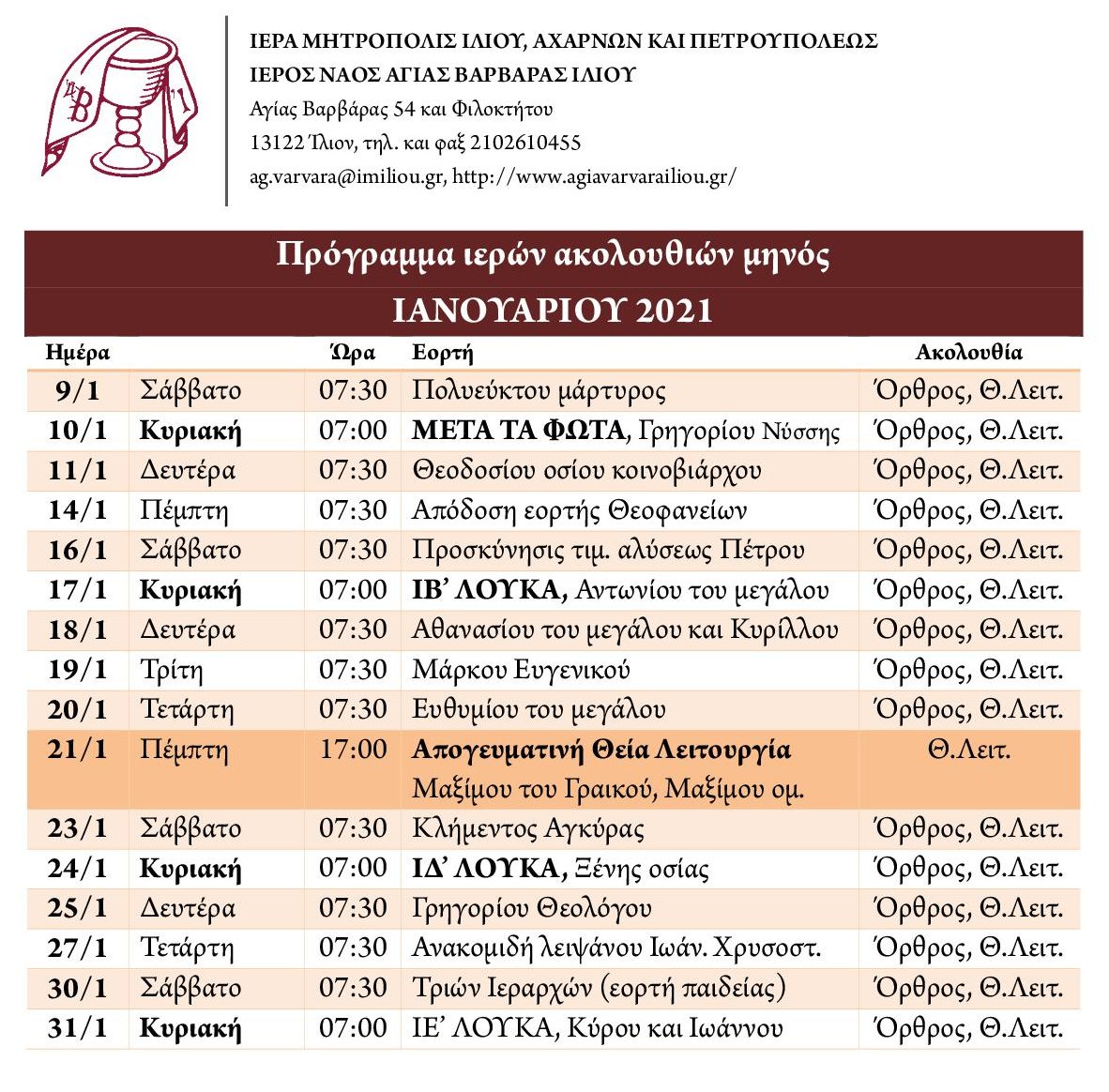 Πρόγραμμα ακολουθιών Ιανουαρίου 2021