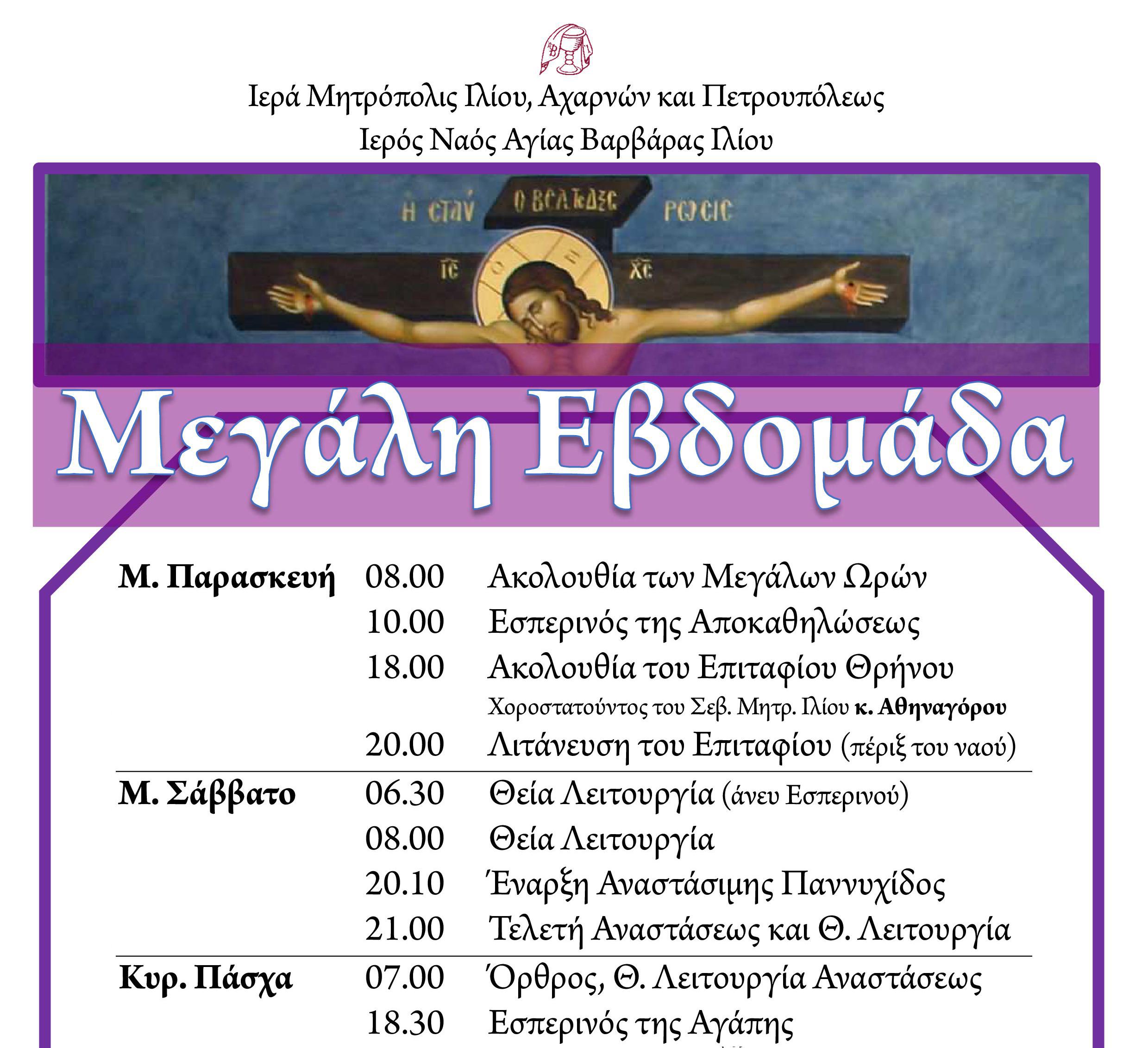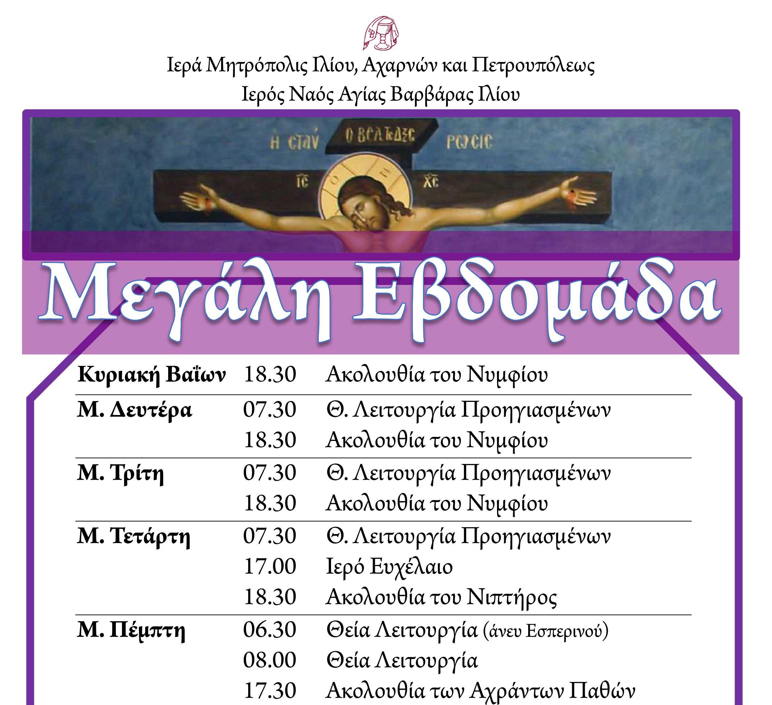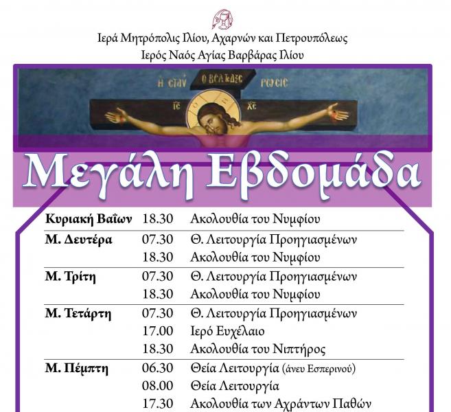 Πρόγραμμα ακολουθιών Μεγάλης Εβδομάδας 2021 στην Αγία Βαρβάρα Ιλίου