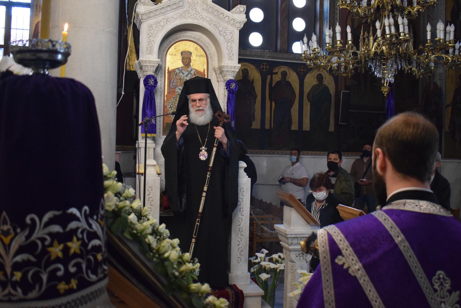 Στον Ιερό Ναό Κοιμήσεως Θεοτόκου Αχαρνών τέλεσε την δεύτερη ακολουθία του Νυμφίου ο Σεβασμιώτατος Μητροπολίτης Ιλίου, Αχαρνών και Πετρουπόλεως κ. Αθηναγόρας, την Μεγάλη Δευτέρα 26/4/2021.