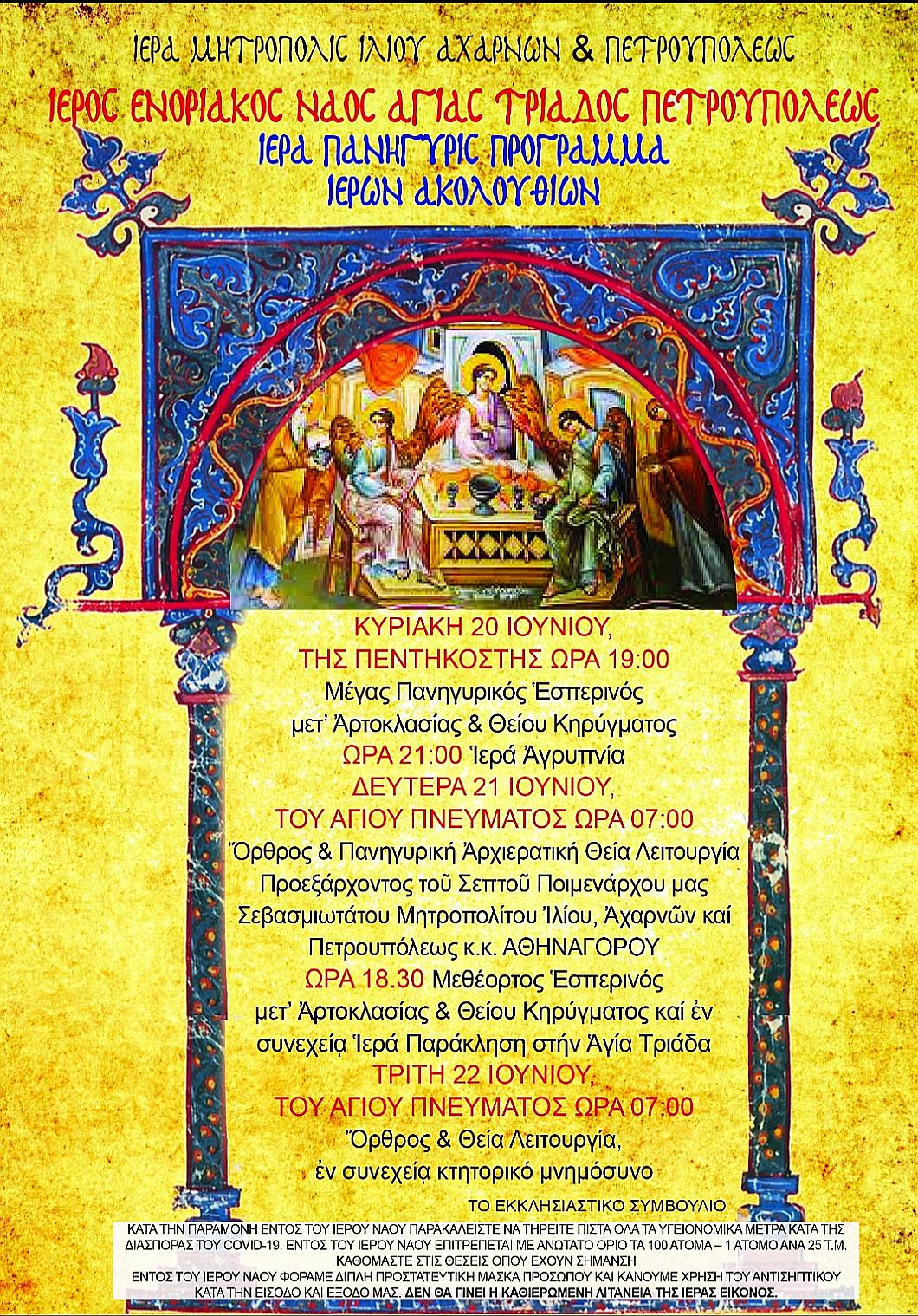 Πρόγραμμα πανηγύρεως Αγ. Τριάδος Πετρουπ.