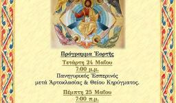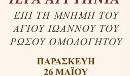 Την Τετάρτη 31 Μαΐου 2023, στις 18:00, θα τελεστεί στον Ιερό Ναό της Ζωοδόχου Πηγής Ιλίου βραδινή Θεία Λειτουργία, επί τη μνήμη των αγίων, ενδόξων και καλλινίκων μαρτύρων Ιουστίνου του φιλοσόφου, Θεσπεσίου και Νέωνος και του Αγίου ενδόξου ιερομάρτυρος Πύρρου.