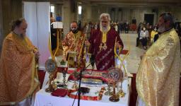 Στο Ολυμπιακό Χωριό, στον υπό ανέγερση Ιερό Ναό των Αγίων Κυρίλλου και Μεθοδίου τελέστηκε η Θεία Λειτουργία την Κυριακή του Αντίπασχα ή του Θωμά, 1 Μαΐου 2022.