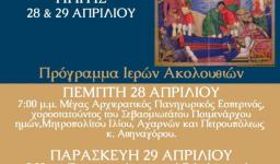 Μία από τις μεγαλύτερες πανηγύρεις των Αχαρνών θα εορταστεί την Παρασκευή 29 Απριλίου 2022 στο Ιερό Παρεκκλήσιο του Αγίου Κωνσταντίνου (Ιερού Ναού Αγίου Βλασίου).