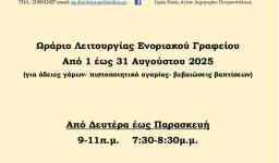 Ωράριο λειτουργίας γραφείων Αγ. Δημητρίου Πετρ.