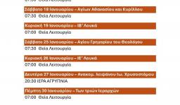 Την Τετάρτη 15.01.2025 θα τελεστεί στον Ιερό Ναό της Ζωοδόχου Πηγής Ιλίου βραδινή Θεία Λειτουργία επί τη εορτή της προσκυνήσεως της αλύσεως του Αγίου Αποστόλου Πέτρου και τη μνήμη του Αγίου Νεομάρτυρος Νικολάου του Μυτιληναίου.