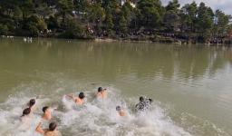 Πραγματοποιήθηκε κι εφέτος ο αγιασμός των υδάτων στη λίμνη Μπελέτσι, που βρίσκεται στην Ιπποκράτειο Πολιτεία, με την κατάδυση του σταυρού. Προεξάρχων της ακολουθίας ήταν ο Σεβασμιώτατος Μητροπολίτης Ιλίου κ. Αθηναγόρας, ο οποίος μάλιστα συνεχάρη όλα τα παιδιά που κολύμπησαν στα κρύα νερά της λίμνης για να πιάσουν τον σταυρό.
