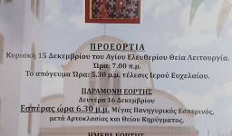 Την Τετάρτη 18.12.2024 θα τελεστεί στον Ιερό Ναό της Ζωοδόχου Πηγής Ιλίου βραδινή Θεία Λειτουργία επί τη μνήμη των Αγίων Μαρτύρων Αγλαΐας, Ρωμαίας και Βονιφατίου και των Αγίων Μαρτύρων Άρεως, Ευτυχίου και Θεσσαλονίκης.