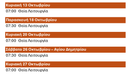 Την Τετάρτη 09.10.2024 θα τελεστεί στον Ιερό Ναό της Ζωοδόχου Πηγής Ιλίου βραδινή Θεία Λειτουργία επί τη μνήμη των αγίων μαρτύρων Ευλαμπίου και Ευλαμπίας και του οσίου Θεοφίλου του ομολογητού.