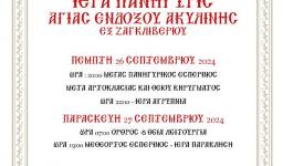 Η Ιερά Μονή Αγίου Παντελεήμονος Πετρουπόλεως πανηγυρίζει την μνήμη της Αγίας Ακυλίνης εκ Ζαγκλιβερίου, στις 26 και 27 Σεπτεμβρίου, σύμφωνα με το ακόλουθο πρόγραμμα: