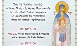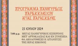 Η Διοικούσα Επιτροπή του Ιερού Προσκυνηματικού Ναού Αγίας Παρασκευής Ανάκασας σας προσκαλεί να τιμήσετε με την παρουσία και την συμπροσευχή σας τις λατρευτικές εκδηλώσεις επί τη εορτή Εφόρου και Προστάτιδας αυτού, οι οποίες θα διεξαχθούν σύμφωνα με το ακόλουθο πρόγραμμα: