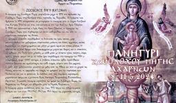 Το πανηγύρι της Ζωοδόχου Πηγής στις Αχαρνές εορτάζεται από το 1898 ανελλιπώς, εκτός από τα έτη 1913, 1941-1944, κατά τα οποία η χώρα μας βρισκόταν σε πολεμικές περιπέτειες και κατοχές. Εορτάζεται, λοιπόν, κι εφέτος, το 2024, σύμφωνα με το ακόλουθο πρόγραμμα:
