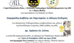Με αφορμή την Παγκόσμια Ημέρα Διαβήτη, η Ιερά Μητρόπολη Ιλίου, Αχαρνών και Πετρουπόλεως, σε συνεργασία με τον Σύλλογο Παλαιμάχων Καλαθοσφαιριστών ΑΕΚ και τον Δήμο Φυλής, διοργανώνουν ιδιαίτερης σημασίας ιατρική διάλεξη, με θέμα: