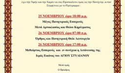 Η ενορία της Ζωοδόχου Πηγής Ιλίου πανηγυρίζει την εορτή του Αγίου Στυλιανού του Παφλαγόνος, στις 25 και 26 Νοεμβρίου 2023, σύμφωνα με το ακόλουθο πρόγραμμα: