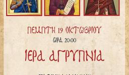 Ιερά αγρυπνία θα τελεστεί στον Ιερό Ναό Αγίας Βαρβάρας Ιλίου την Τετάρτη 11 Οκτωβρίου 2023, από 20:00 έως 01:00 περίπου τα ξημερώματα της Πέμπτης, επί τη μνήμη του Αγίου Συμεών του νέου Θεολόγου.
